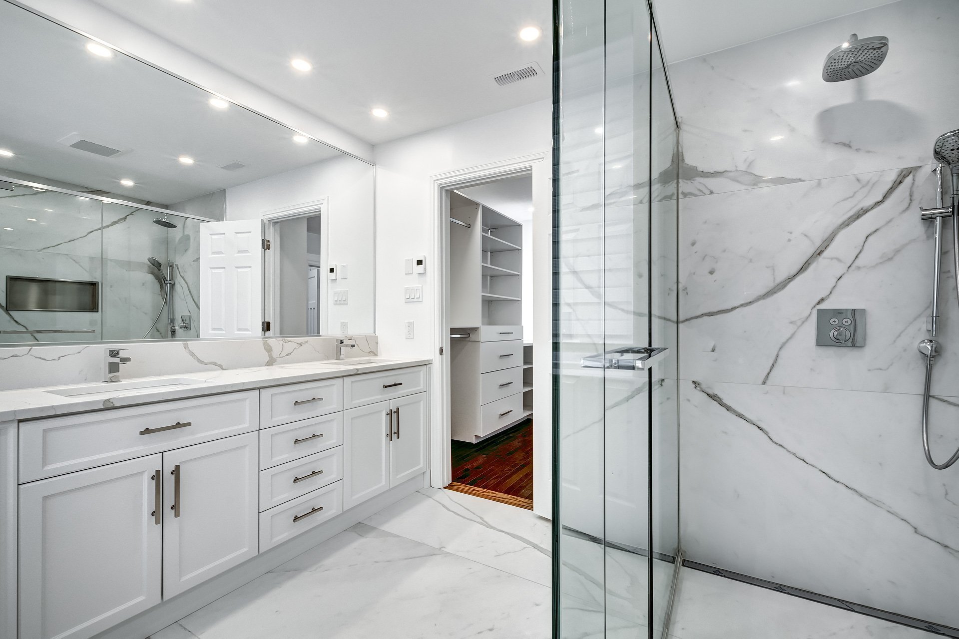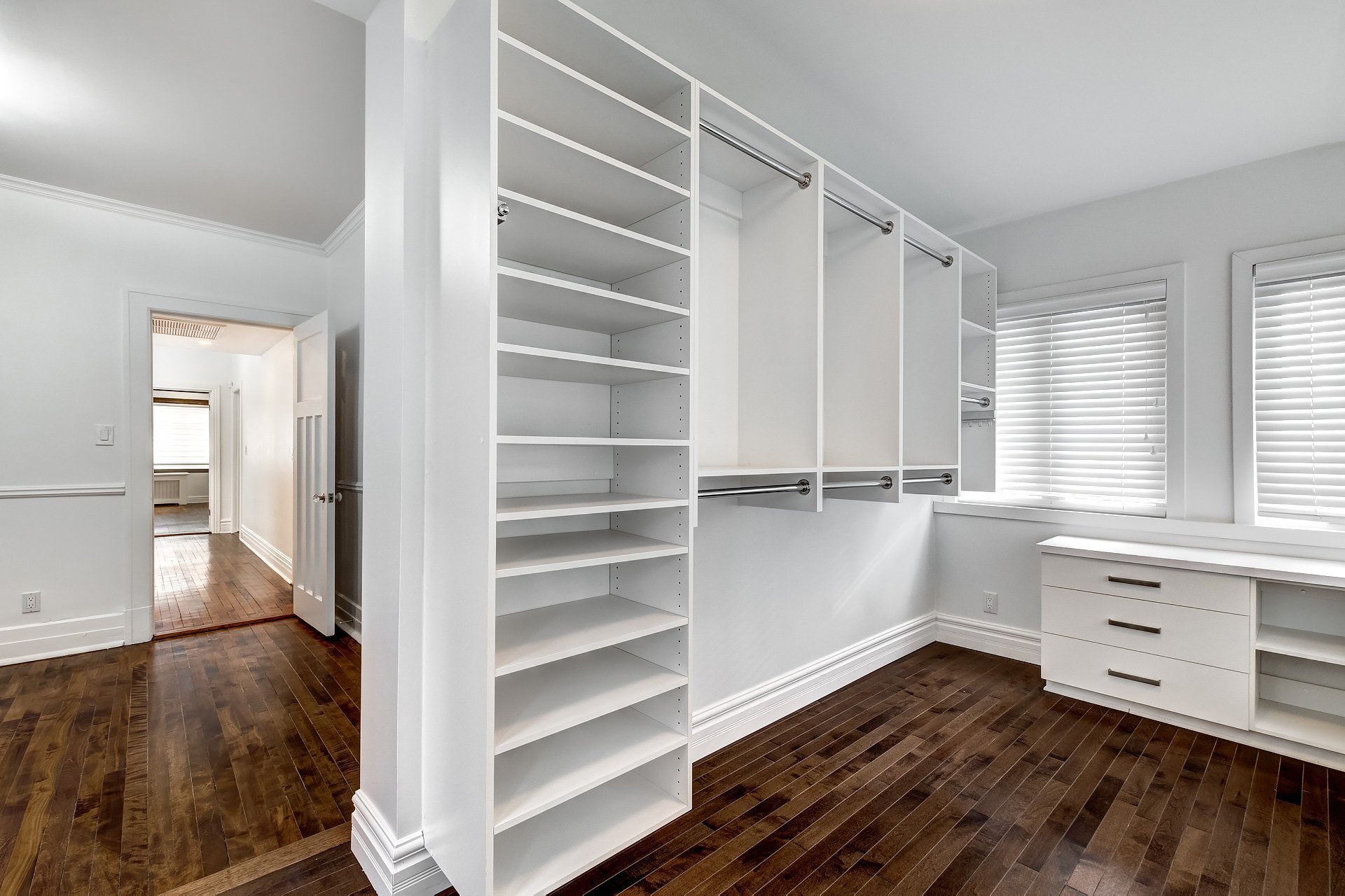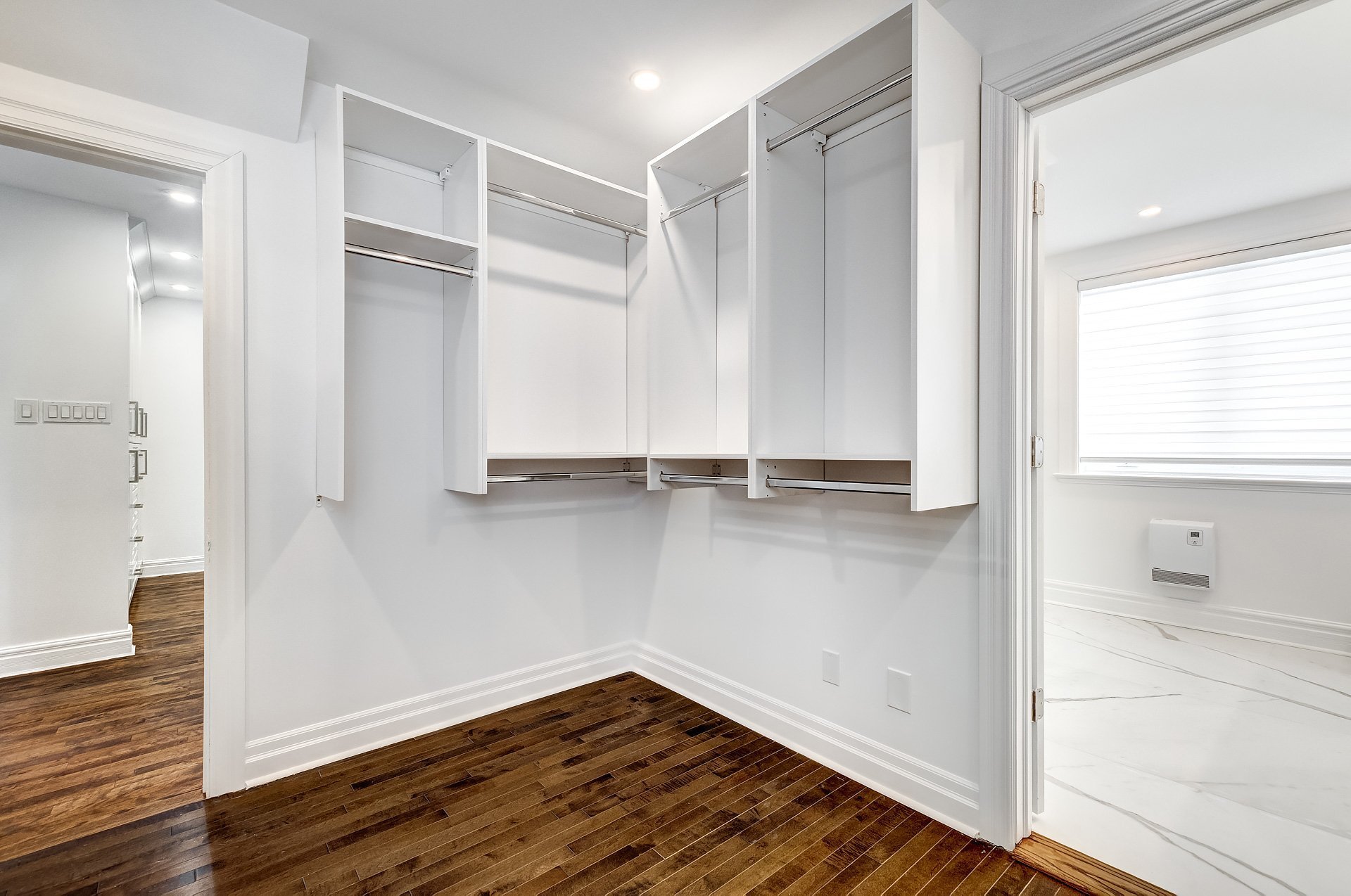 +An exceptional walk-in closet, providing optimal storage space