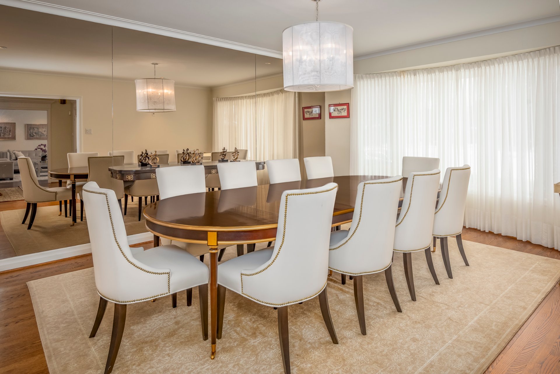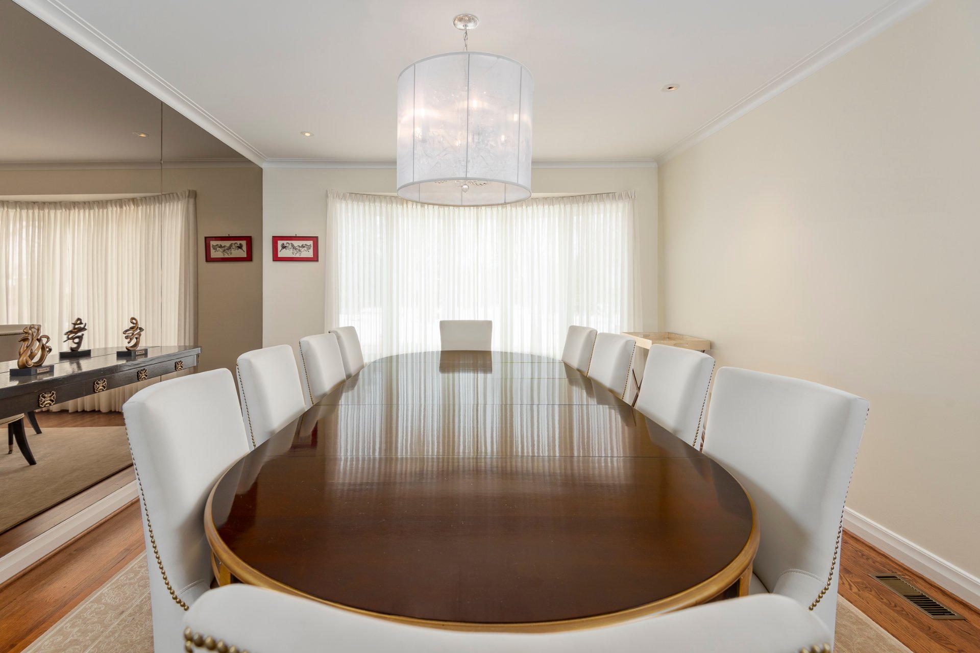 + Large formal dining room that comfortably accommodates a table for 12 guests, with direct access to the kitchen