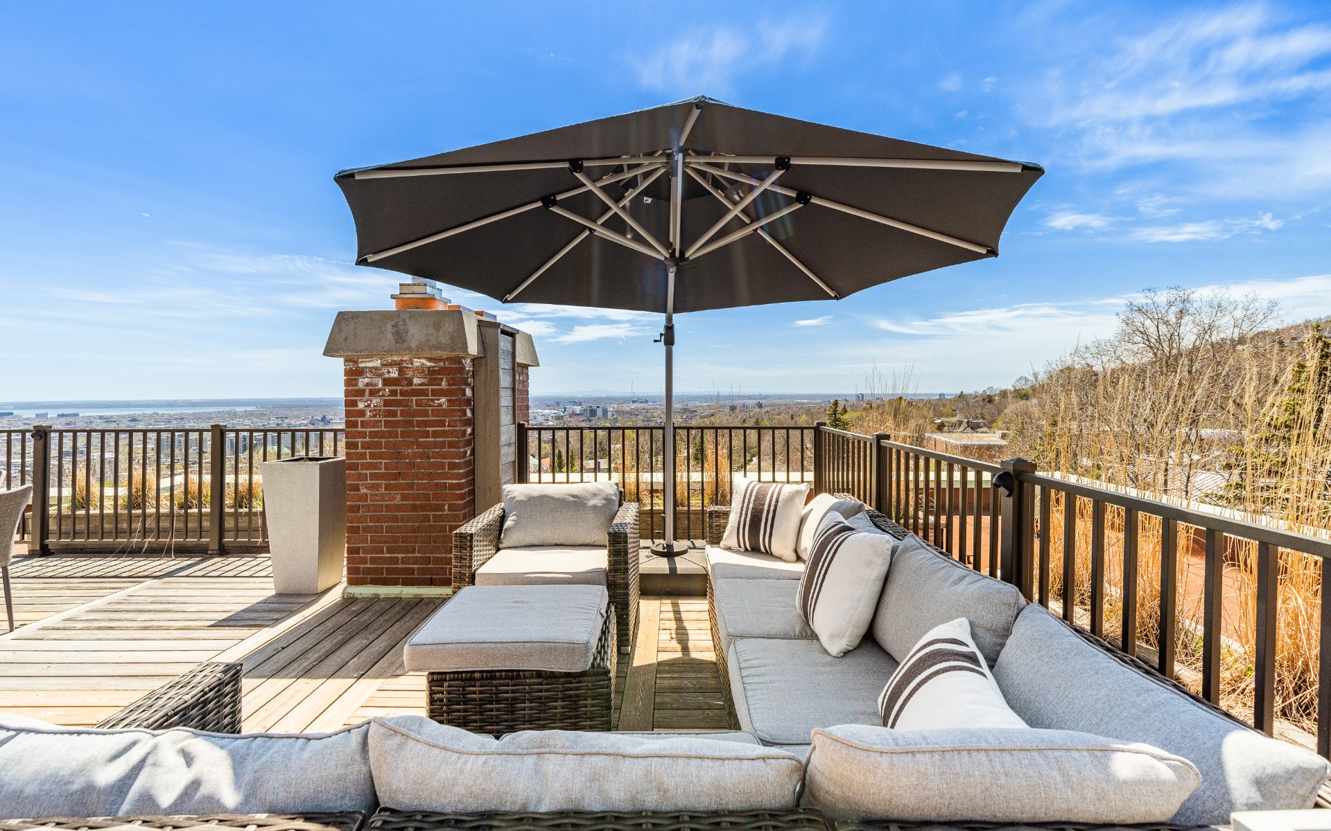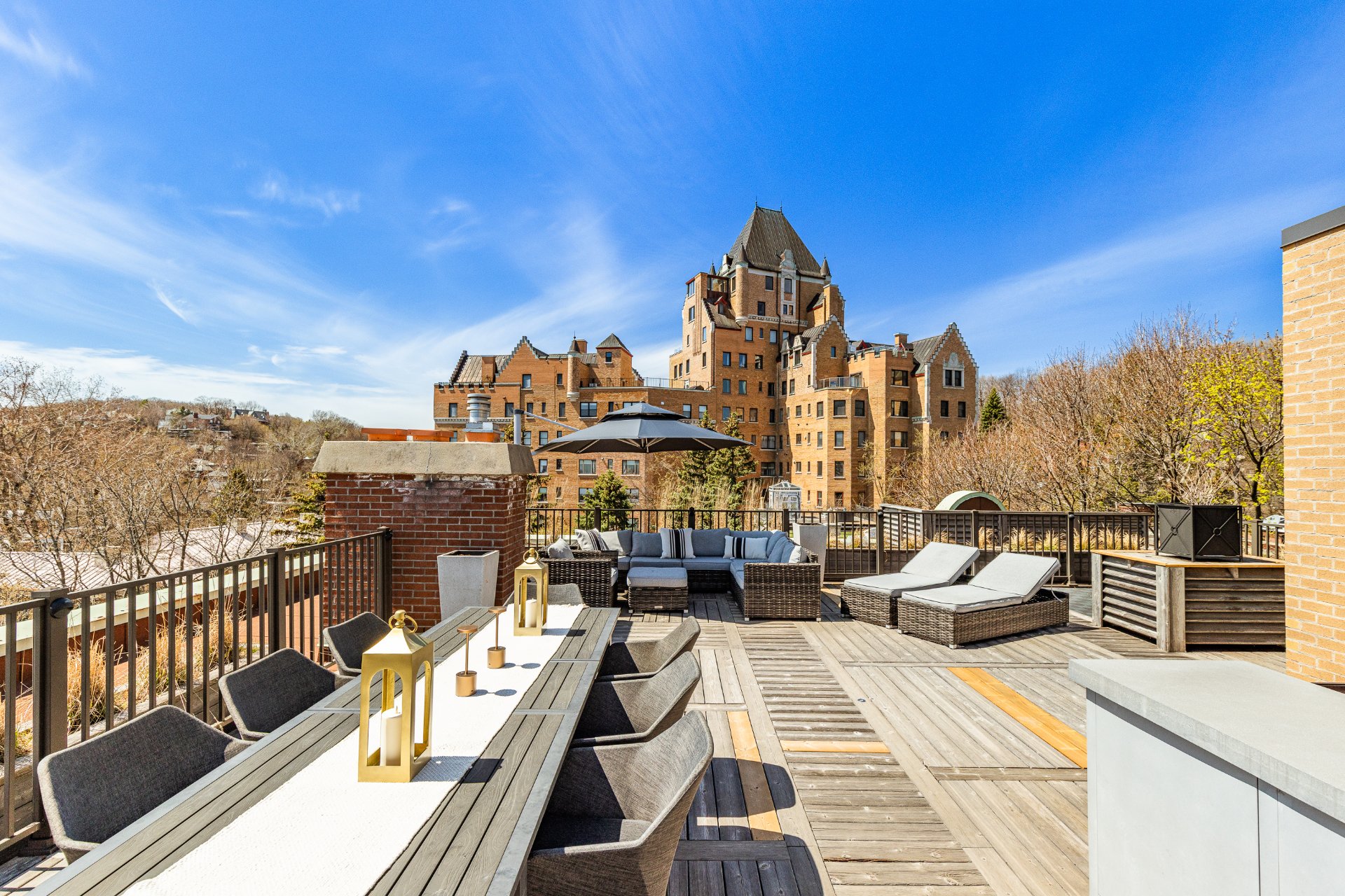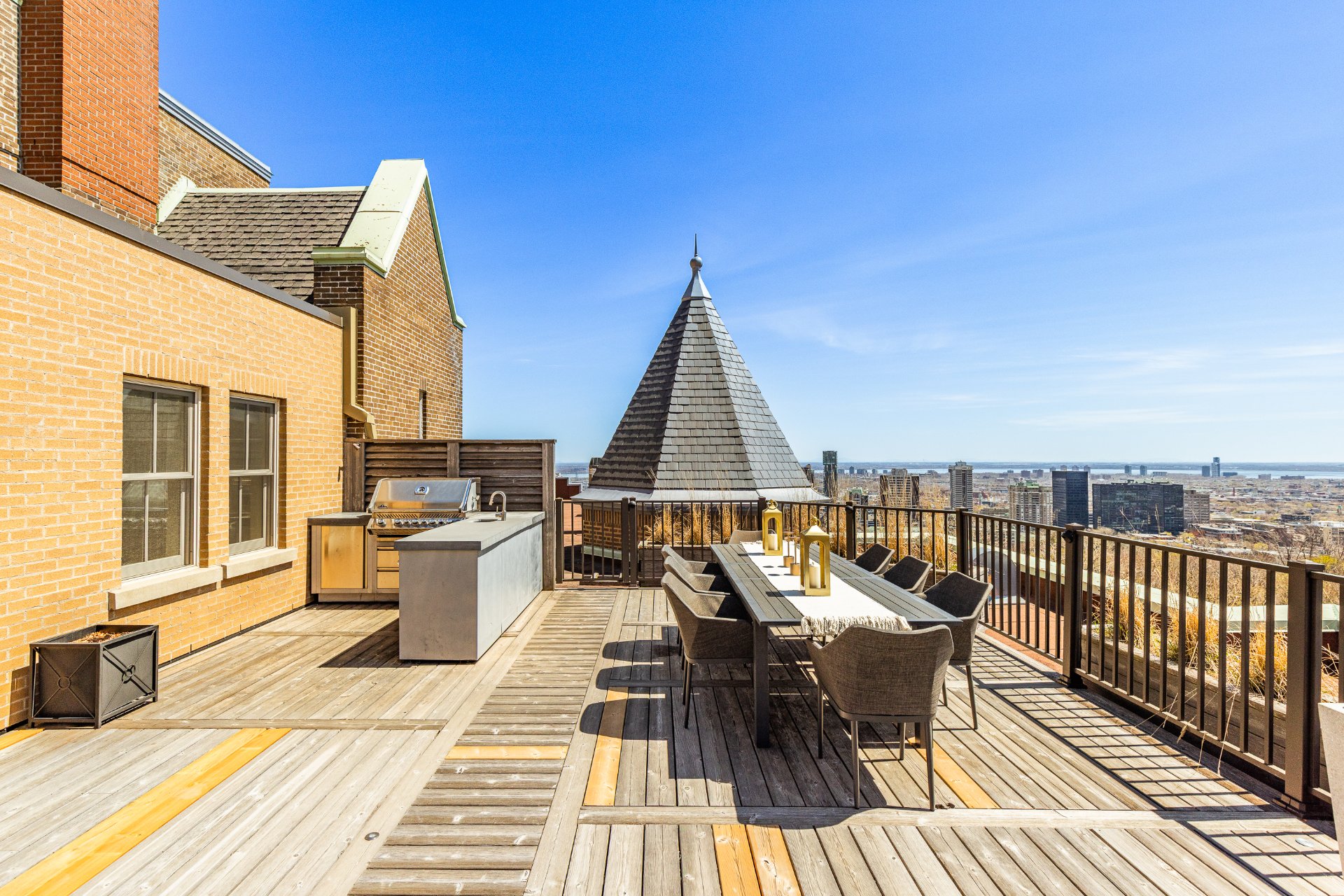+ Spectacular private rooftop terrace featuring distinct lounging and dining areas, outdoor kitchen, and panoramic views