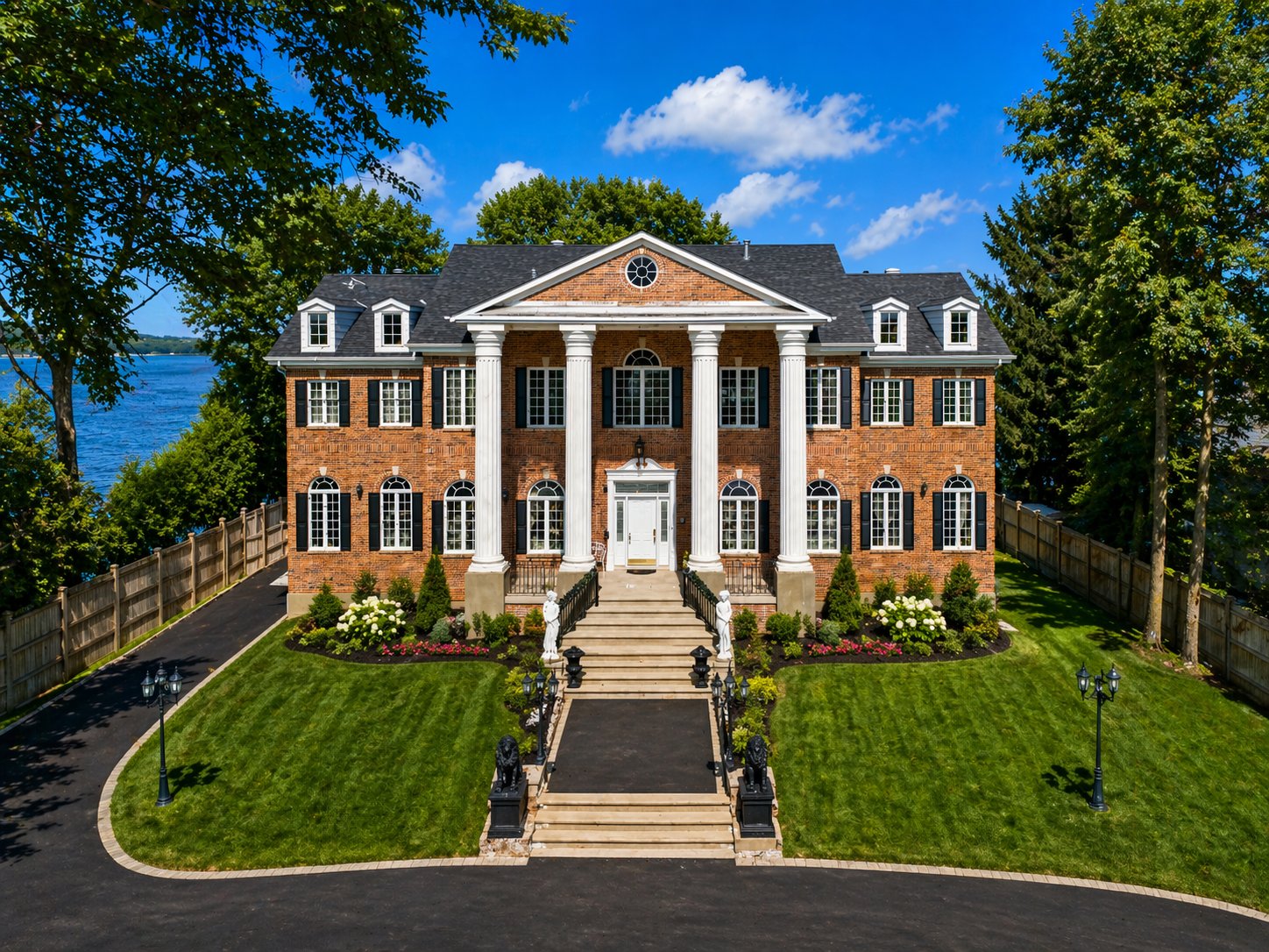 An extraordinary neoclassical residence offering over 100 feet of pristine waterfront, a boat dock, impeccably landscaped grounds, and an eight-car garage. Rarely found, the upper floor features five generously sized bedrooms and three full bathrooms, providing exceptional comfort and flexibility for family living. The ground floor is impressively spacious, anchored by a grand central staircase that forms the architectural heart of the home. A refined and timeless property showcasing perfect proportions, remarkable features, and an incomparable waterfront setting.