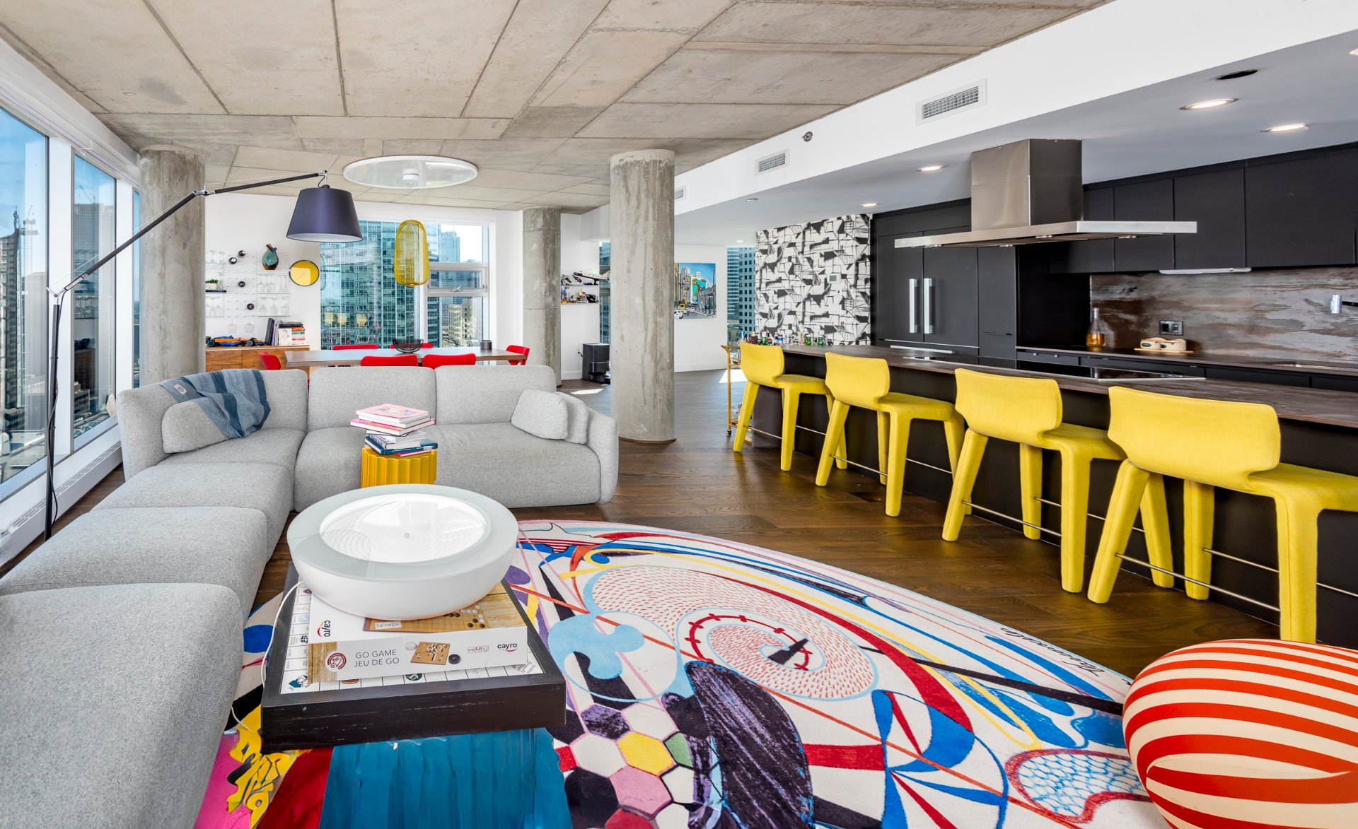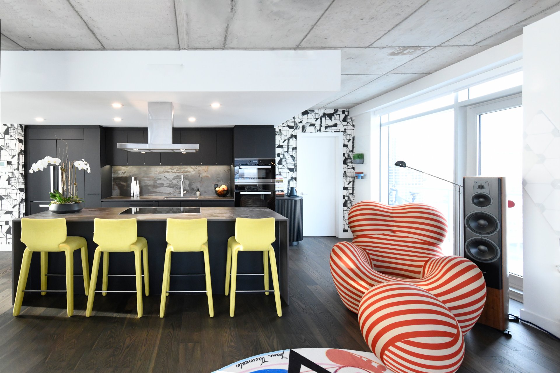 + Industrial-chic details: concrete ceilings, exposed columns