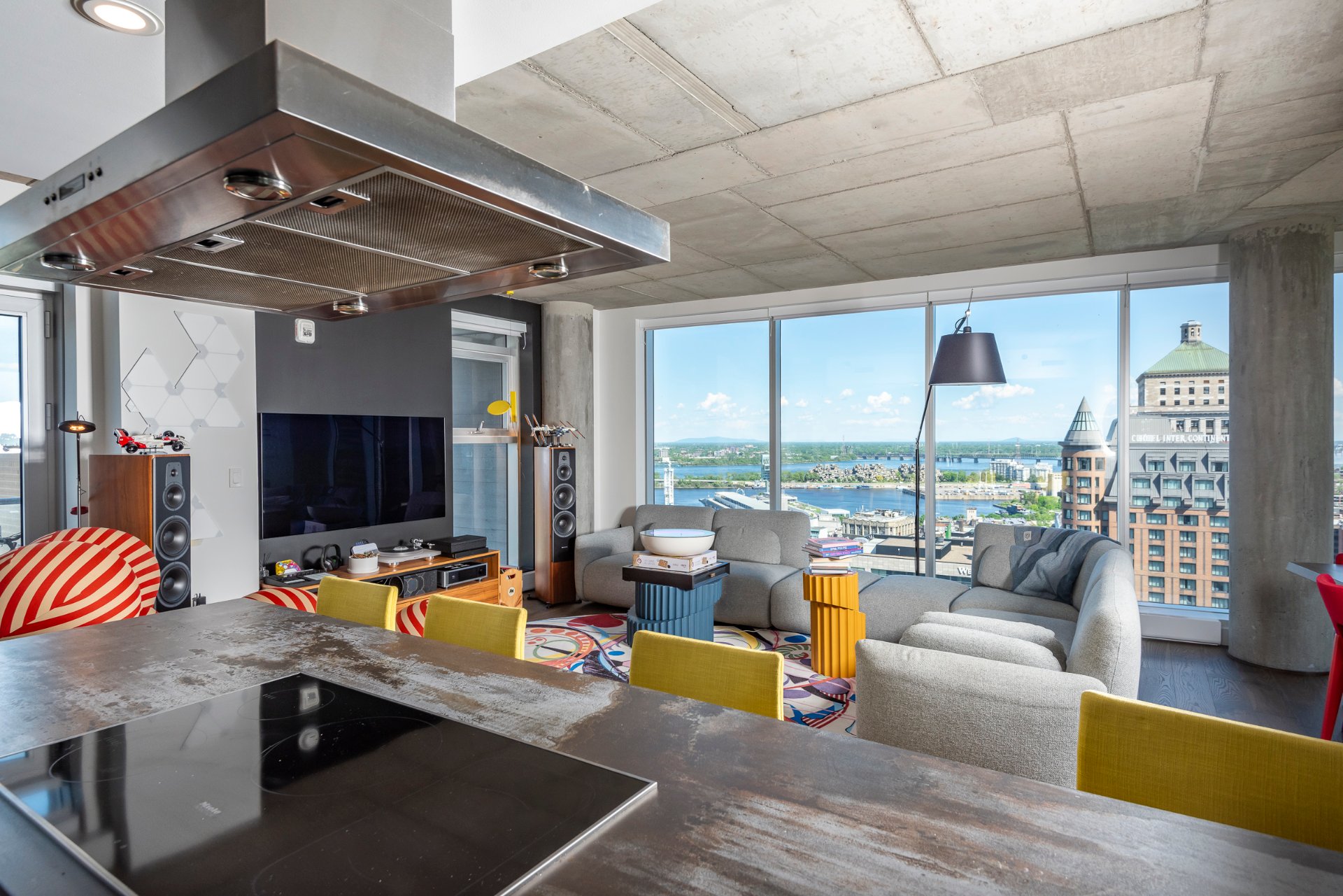 + Bright, open-concept living space with floor-to-ceiling windows