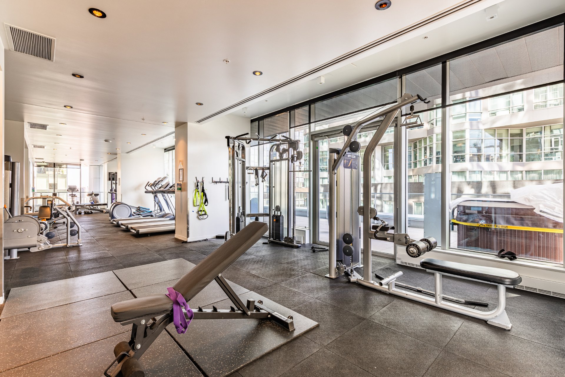+ 8th Floor Oasis with indoor saltwater pool, gym, dry sauna, lounge, conference room, yoga room, terrace, exterior hot tub.