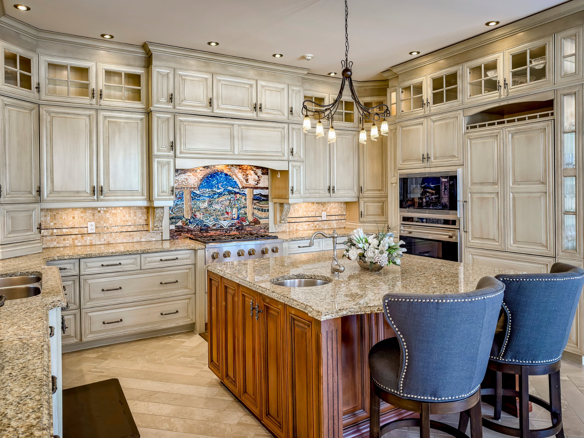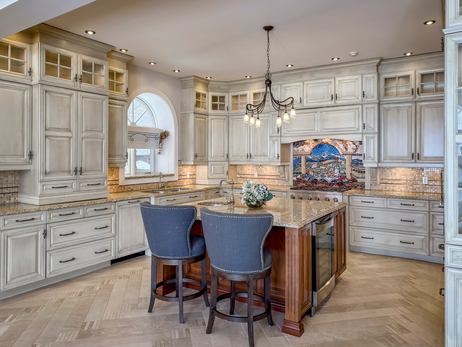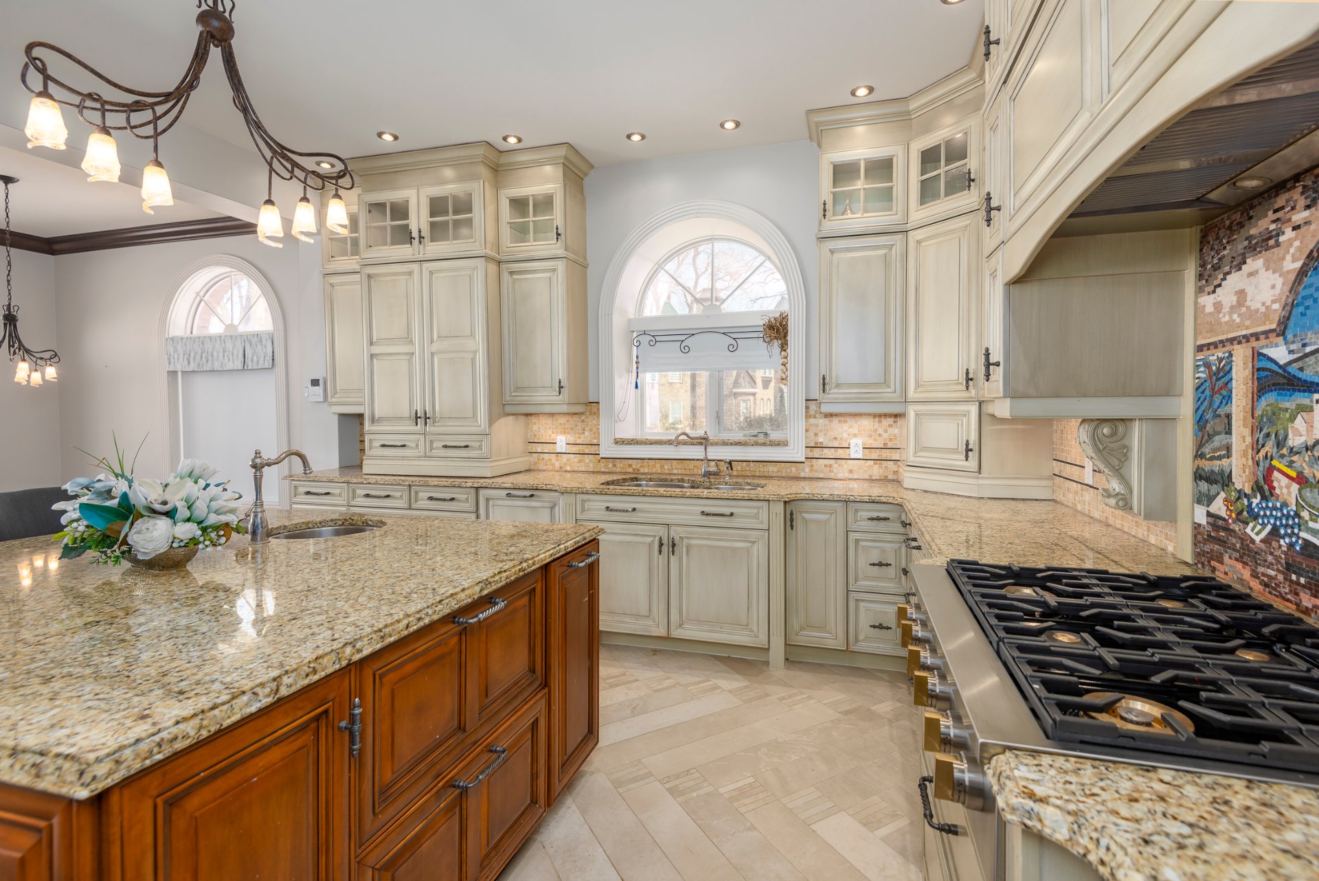 + The spacious kitchen is both functional and inviting, offering heated ceramic floors, a breakfast area, granite countertops and abundant storage.
