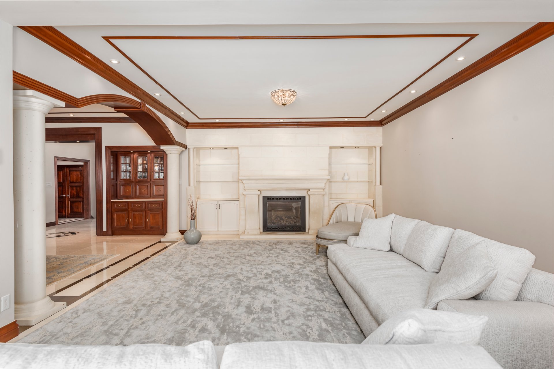 + The third level is dedicated to the suites and features an impressive primary suite with beautiful ceiling height, walk-in dressing area and an ensuite bathroom. A second suite completes this level.
