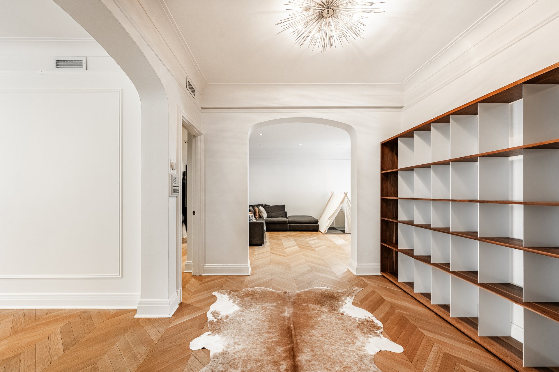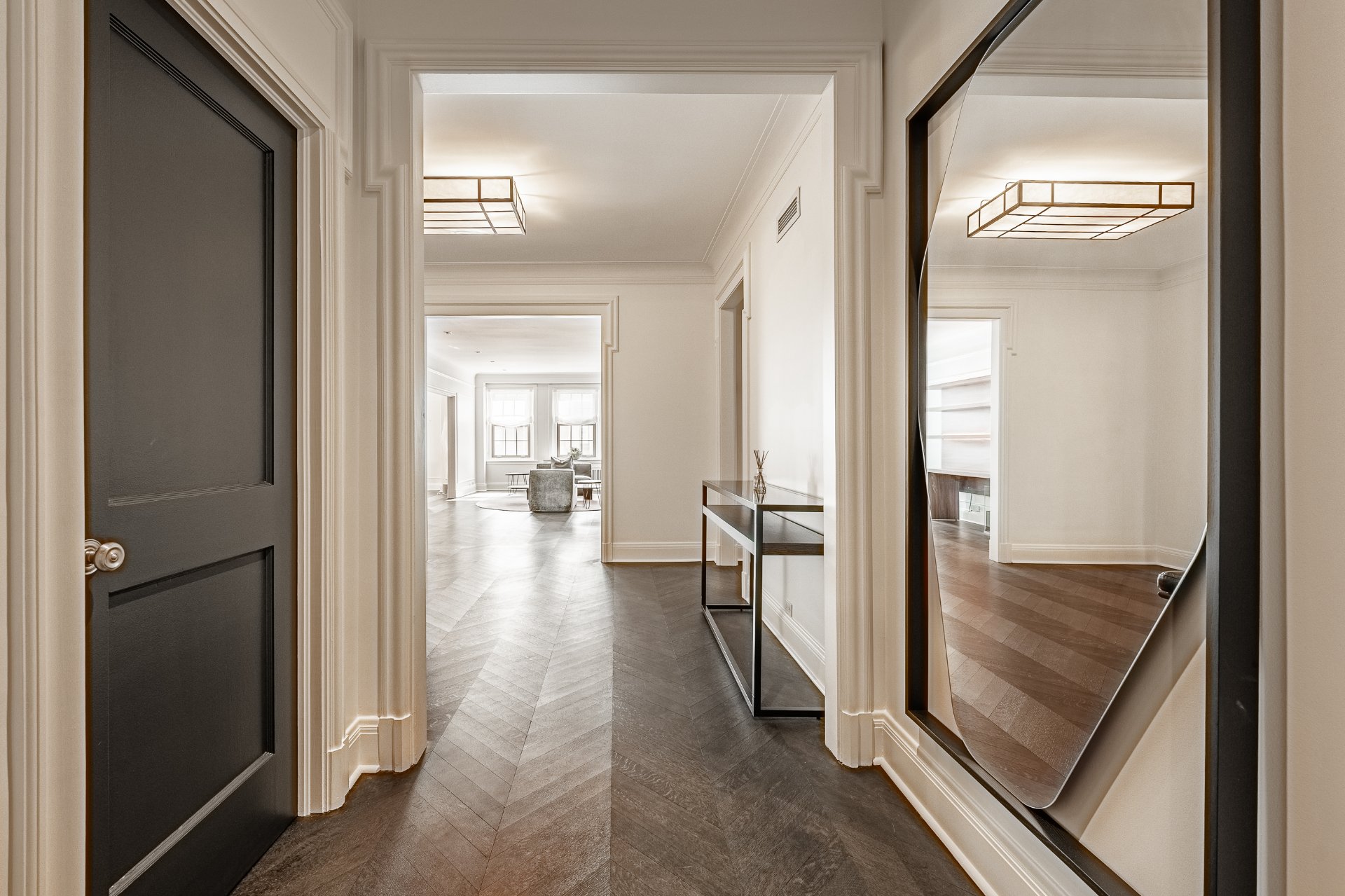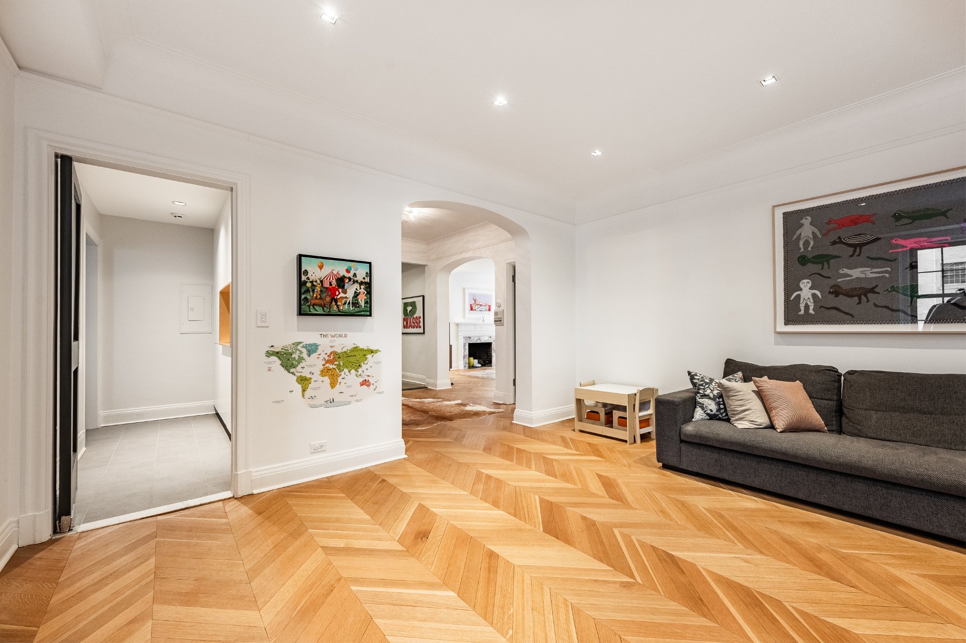 + Timeless herringbone wood floors throughout the apartment