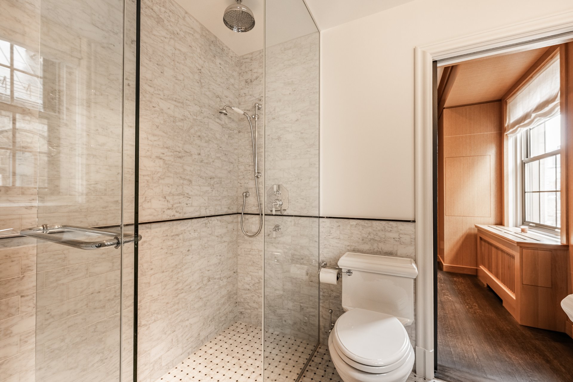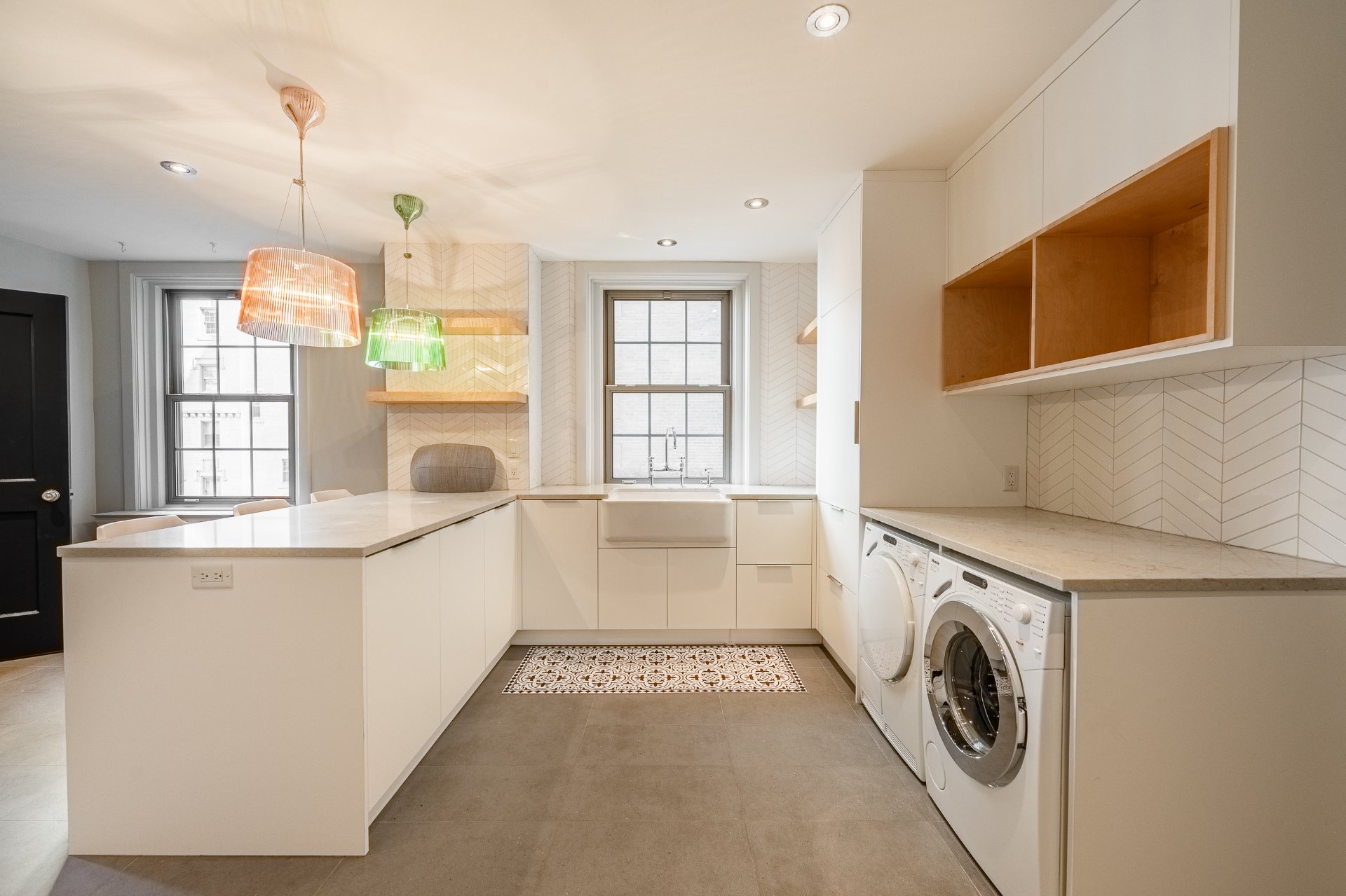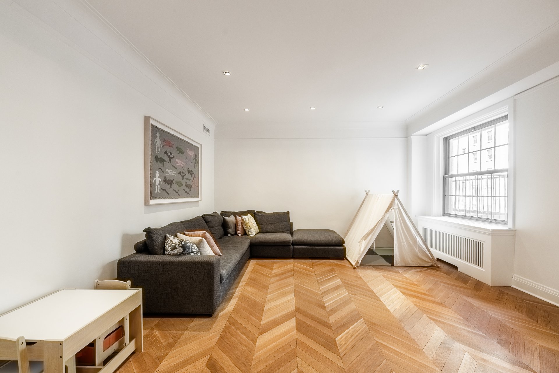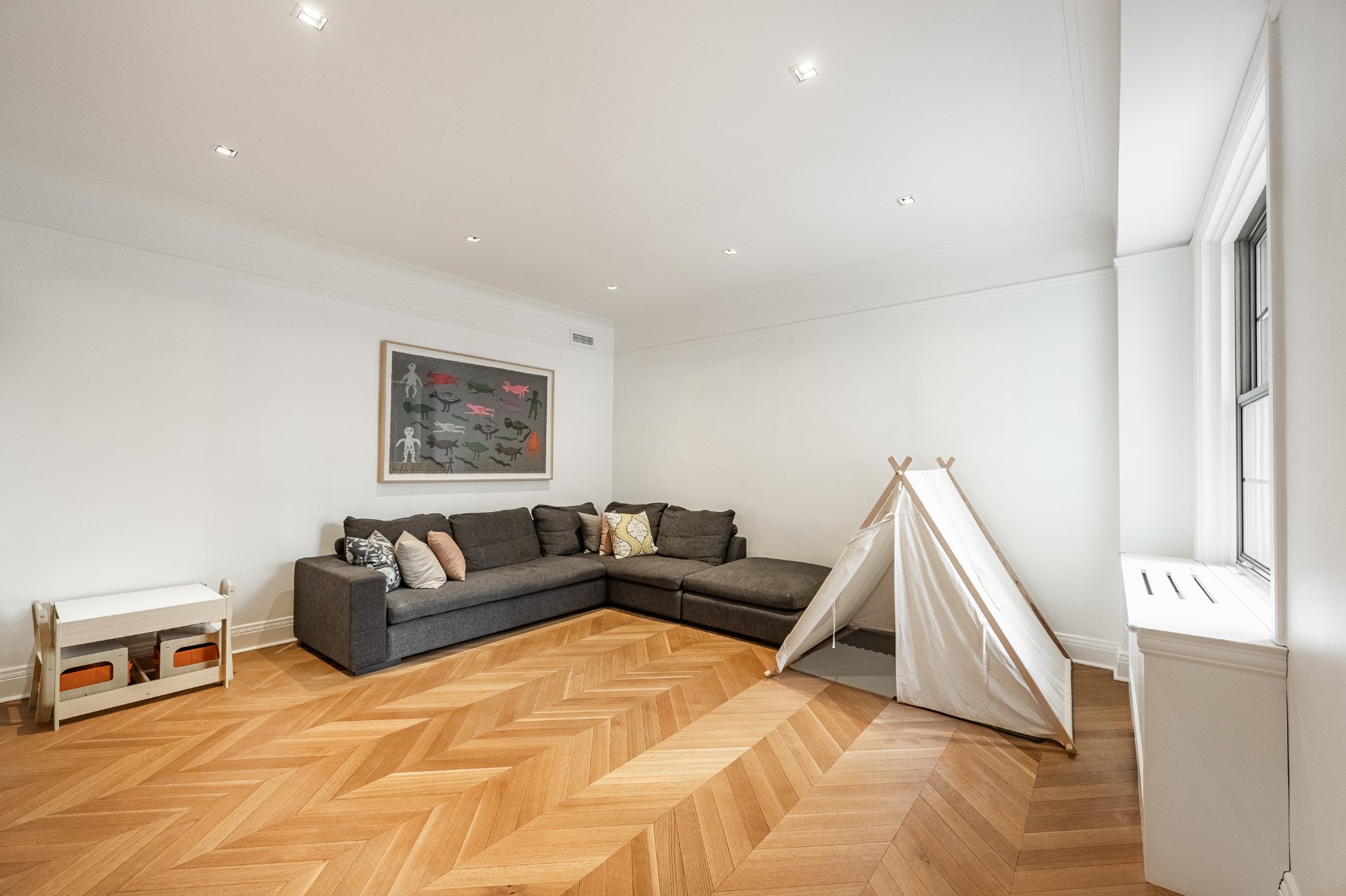 + Timeless herringbone wood floors throughout the apartment