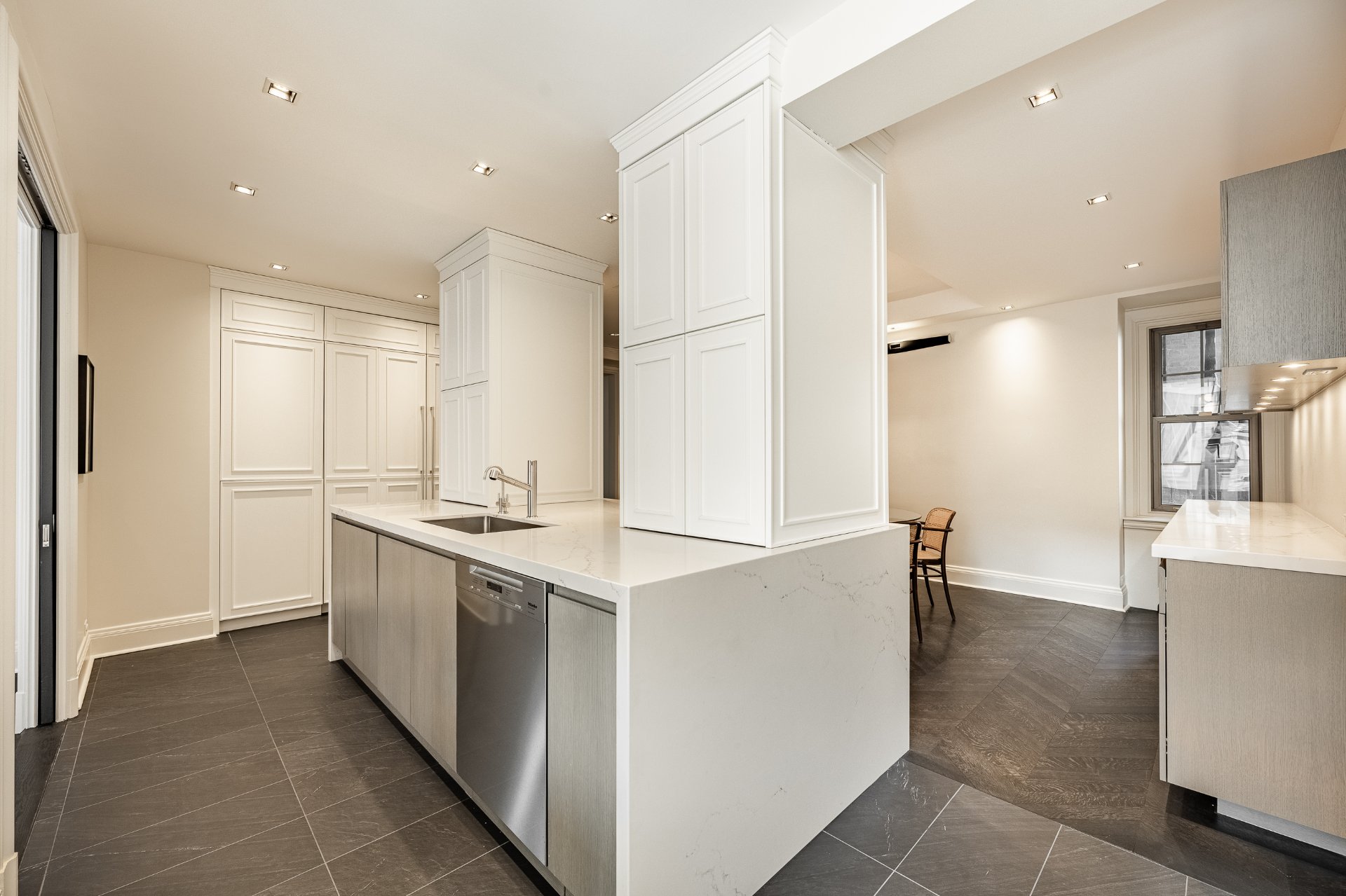 This exceptional residence spans over 4,480 sq. ft. of refined living space within the prestigious Château. Meticulously renovated to the highest standards, it seamlessly blends elegance, modern luxury, and unparalleled comfort. The apartment boasts 5 bedrooms, 3+2 bathrooms, expansive living areas, and generous proportions, complemented by 2 garages and 2 storage units. Enjoy 24/7 security and unrivaled management services. Located in the heart of the city, it offers an uncompromising urban lifestyle. The Château, built in 1925, stands as a symbol of European-inspired architecture in the Iconic Golden Square Mile.