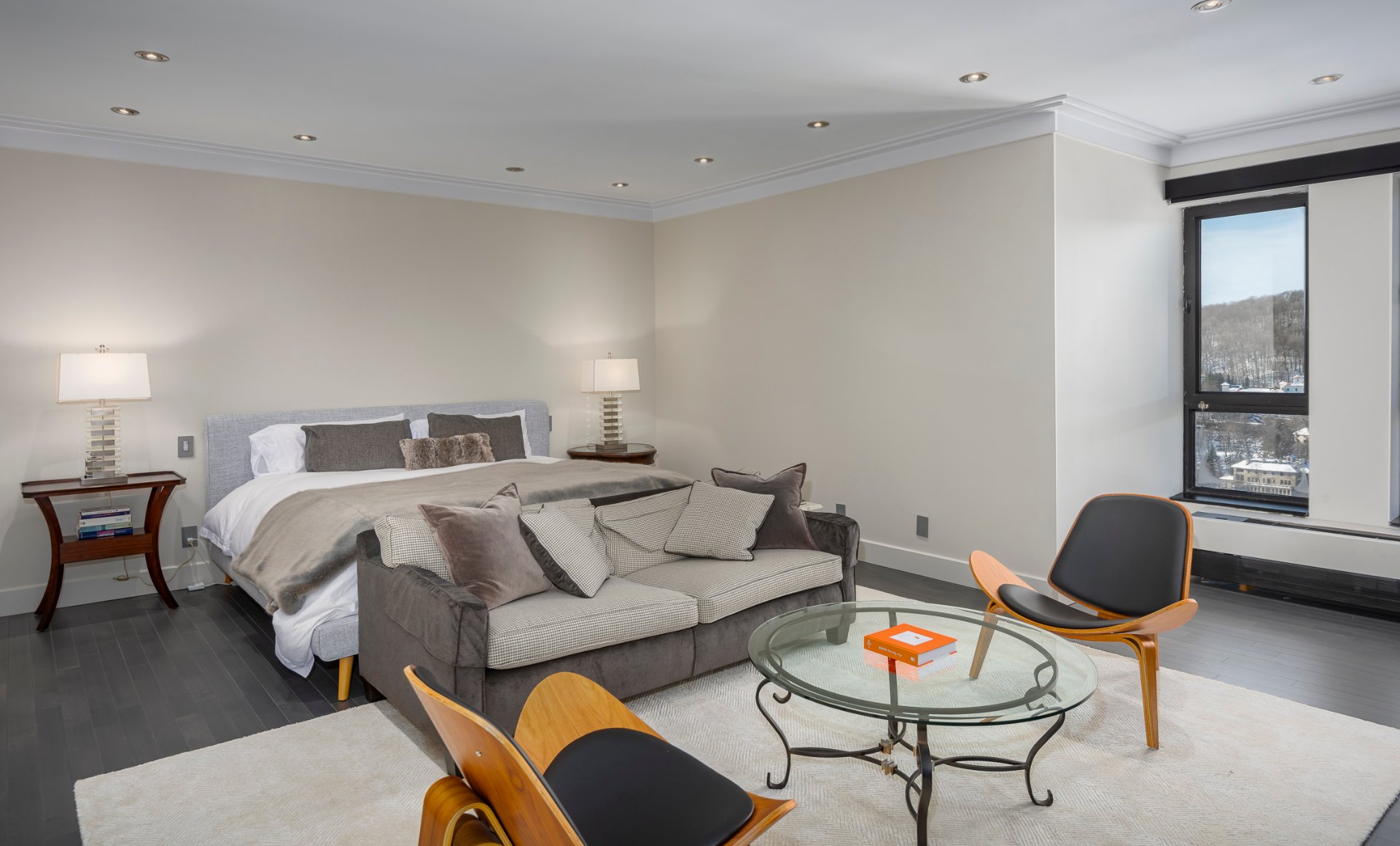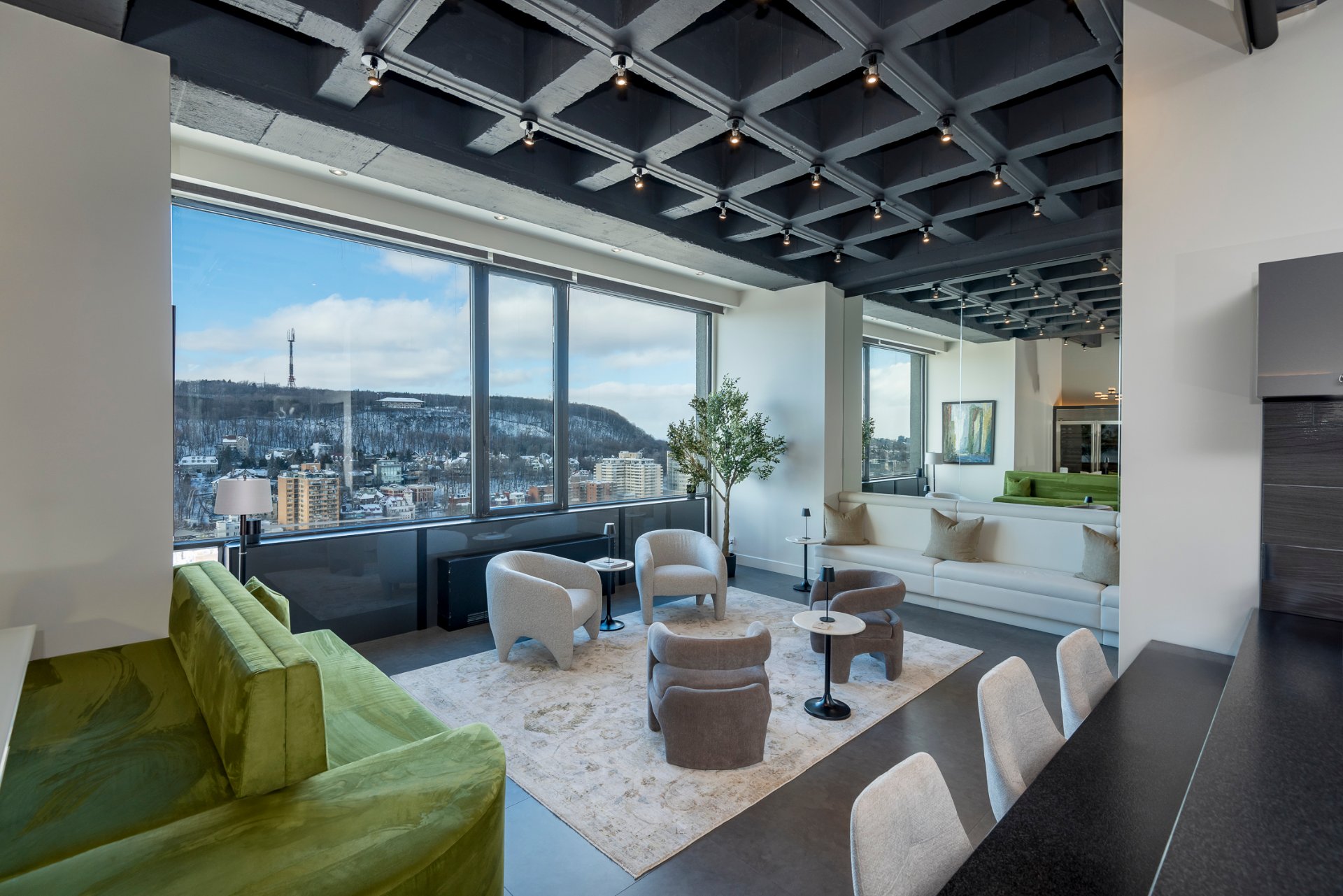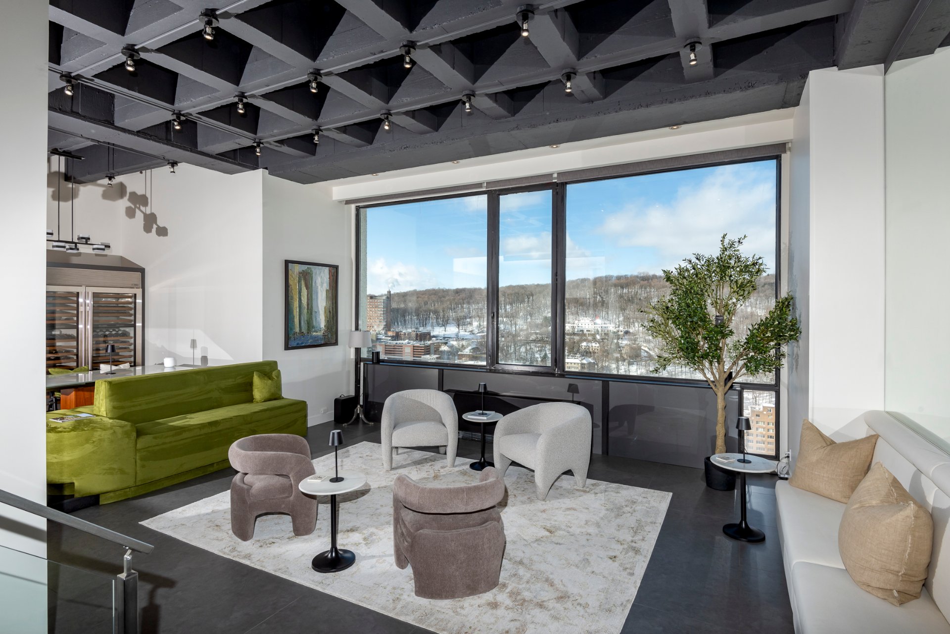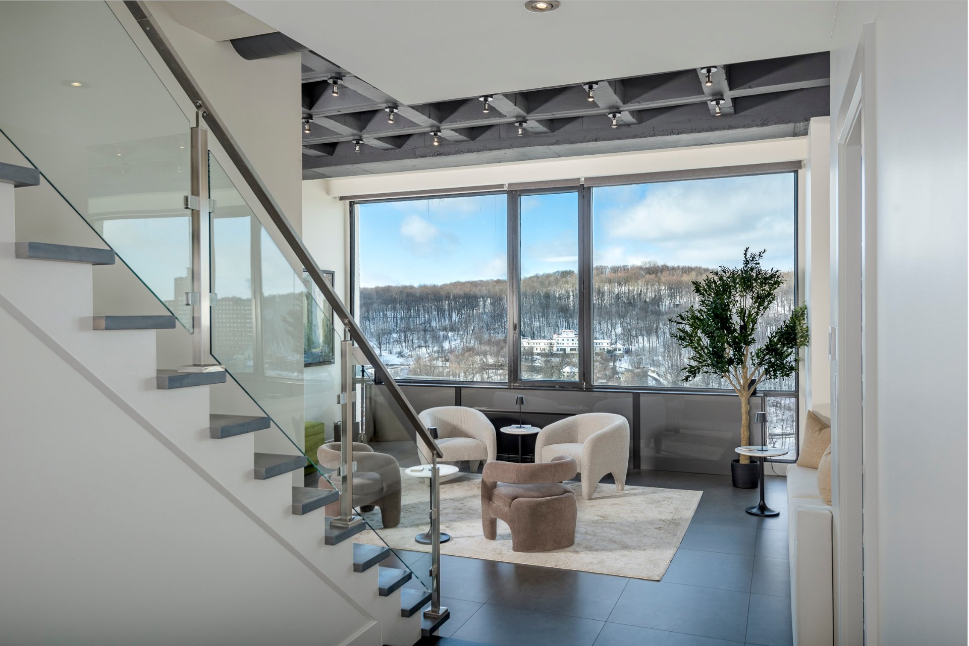 Suspended among the clouds, this magnificent duplex penthouse rises majestically, facing the mountains. Its impressive ceiling height undoubtedly lends it an air of nobility. The breathtaking mountain view offers a permanent, ever-changing spectacle shaped by the seasons. Living area open and inviting designed for comfort and conviviality. Upper level features a sumptuous primary suite with separate his-and-her bathrooms, 2nd bedroom with its own private bathroom. A true diamond within an elegant and refined jewel box. Port Royal stands as an essential choice, renowned for its rigorous management and its unparalleled, unmatched amenities.