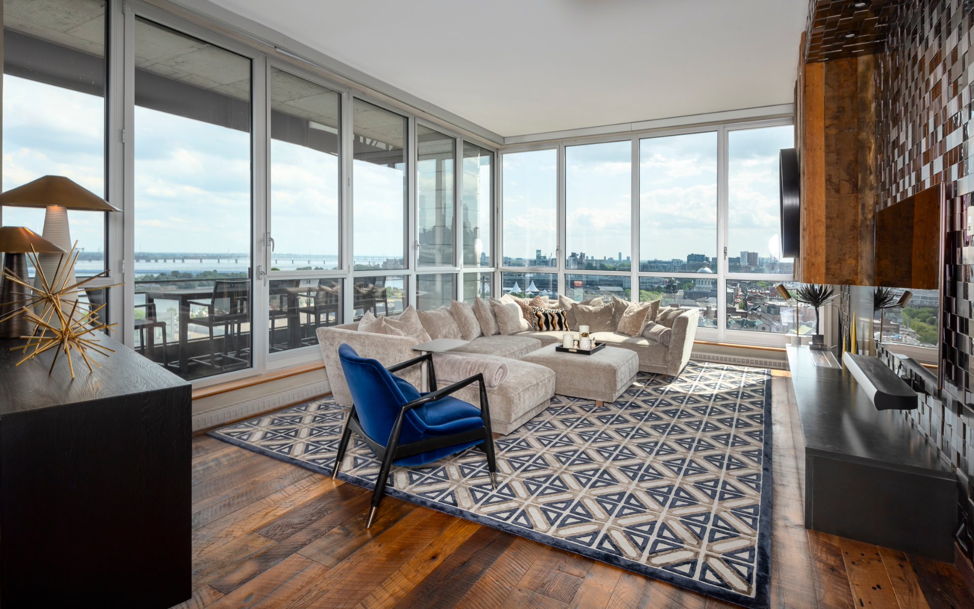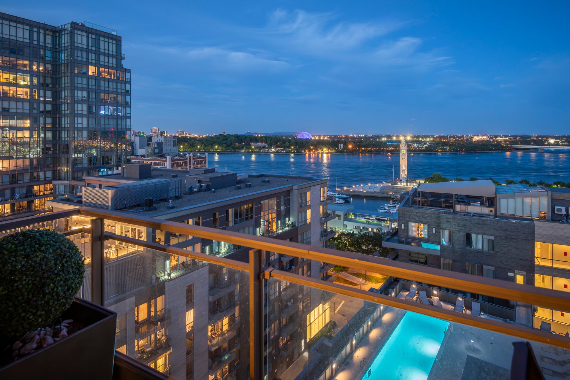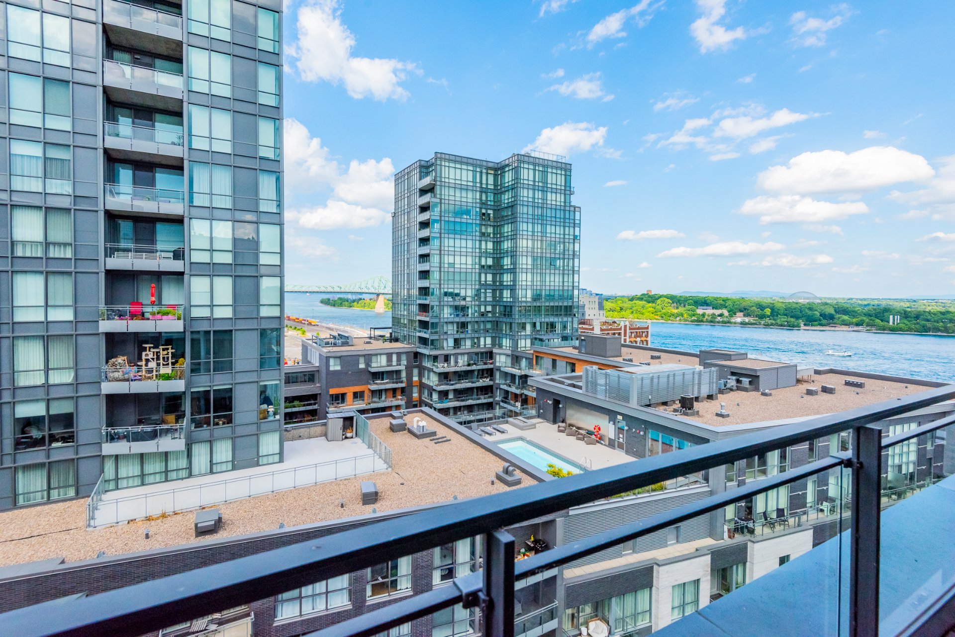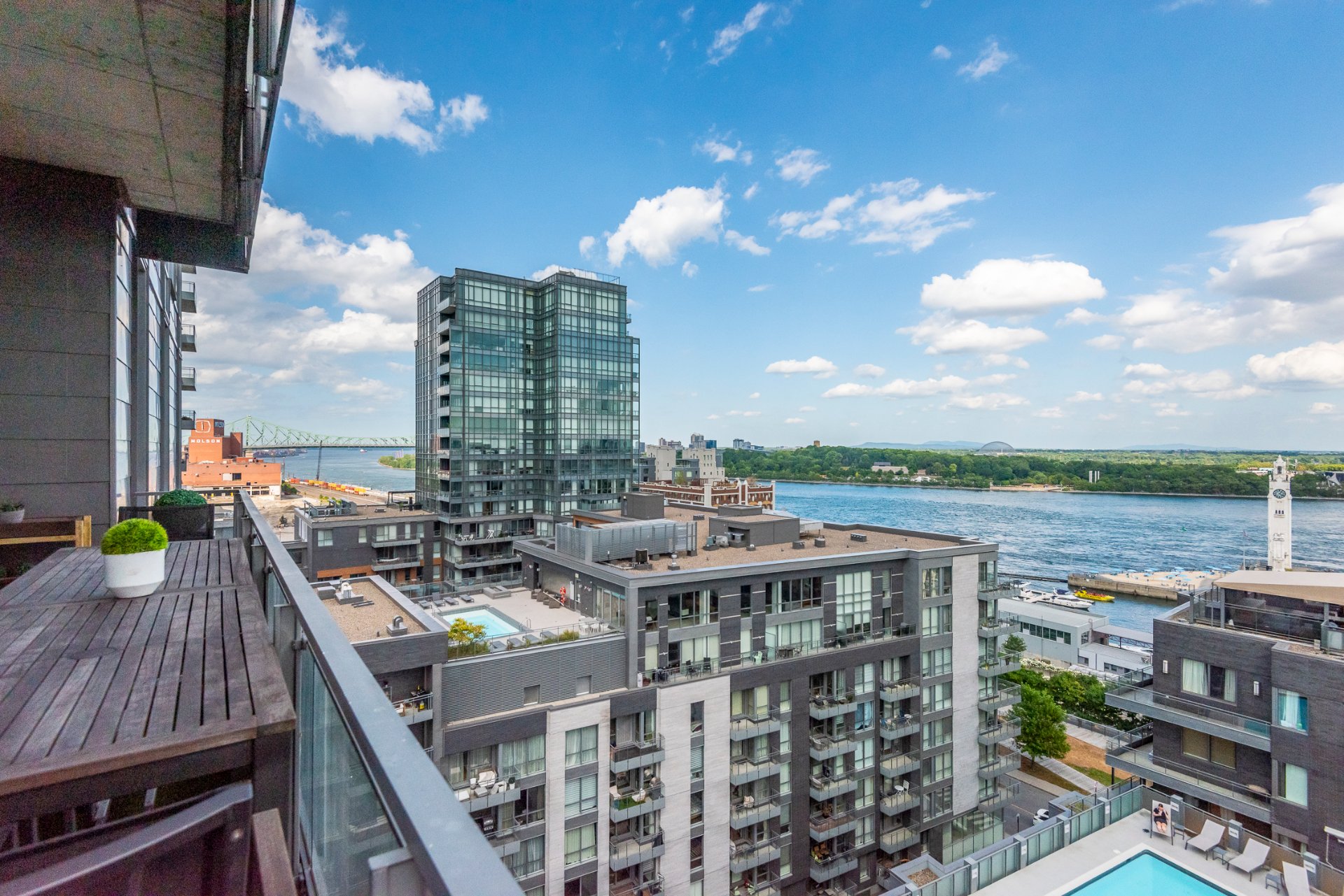 + High ceilings throughout with stunning views of the city skyline and St. Lawrence River
