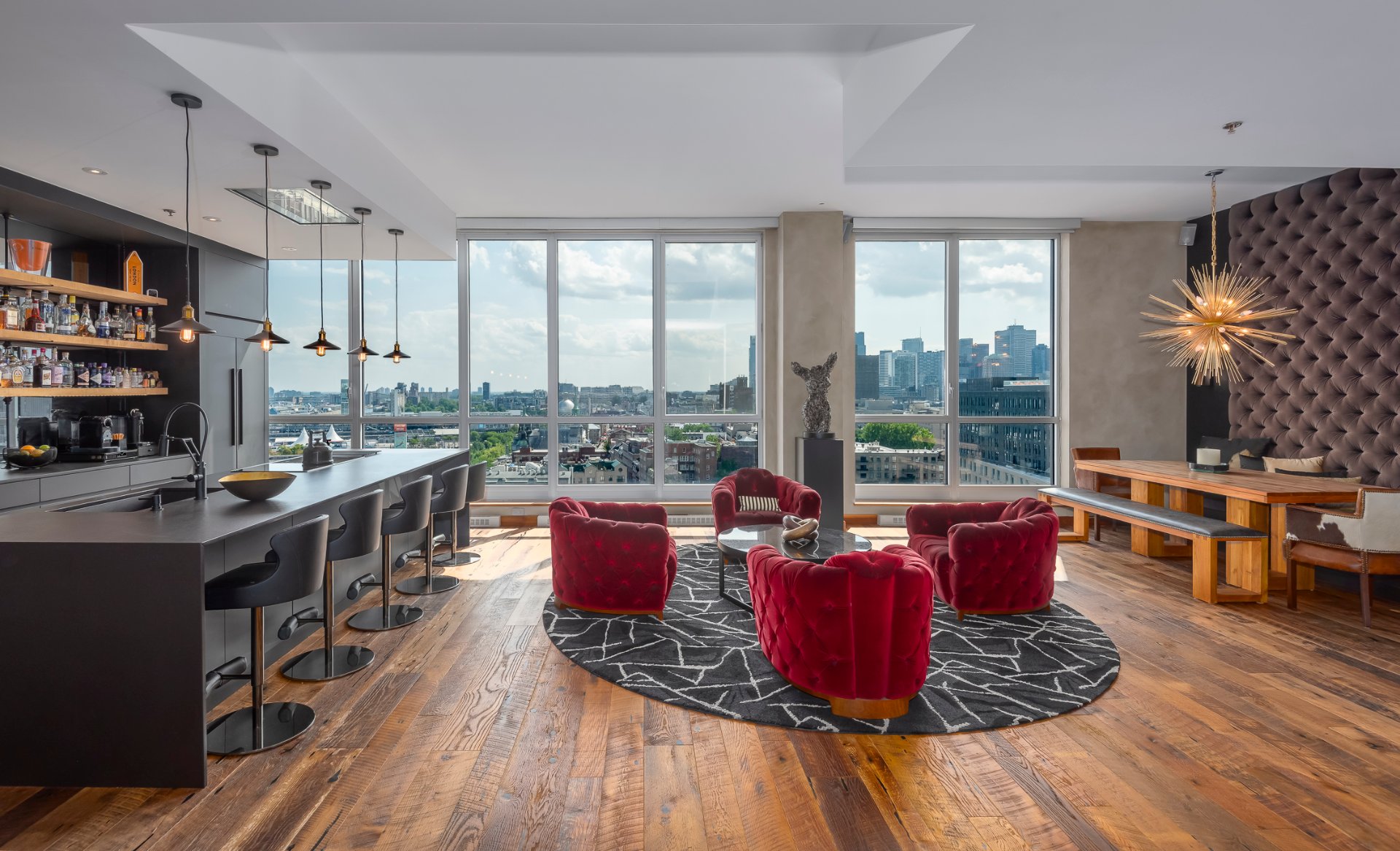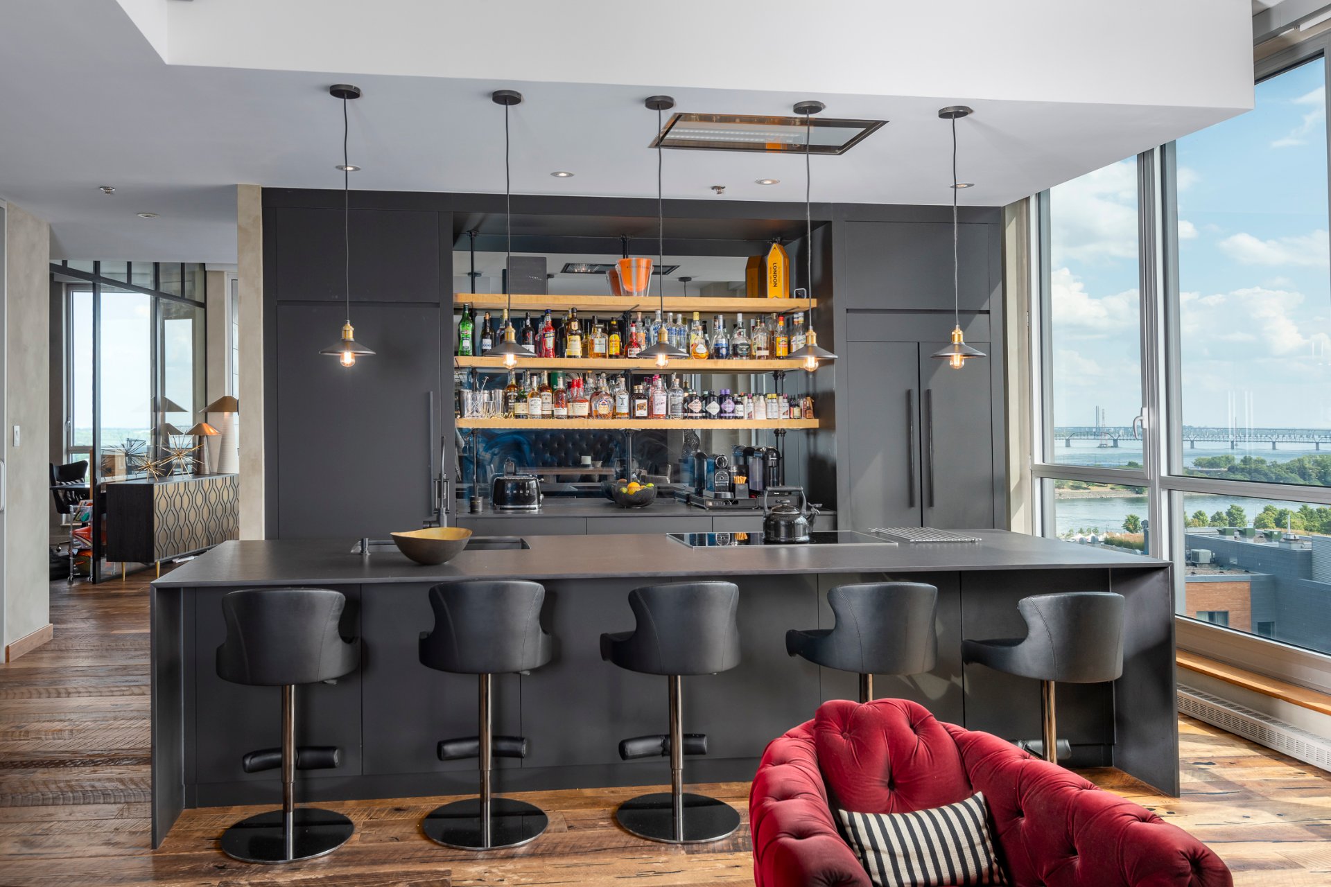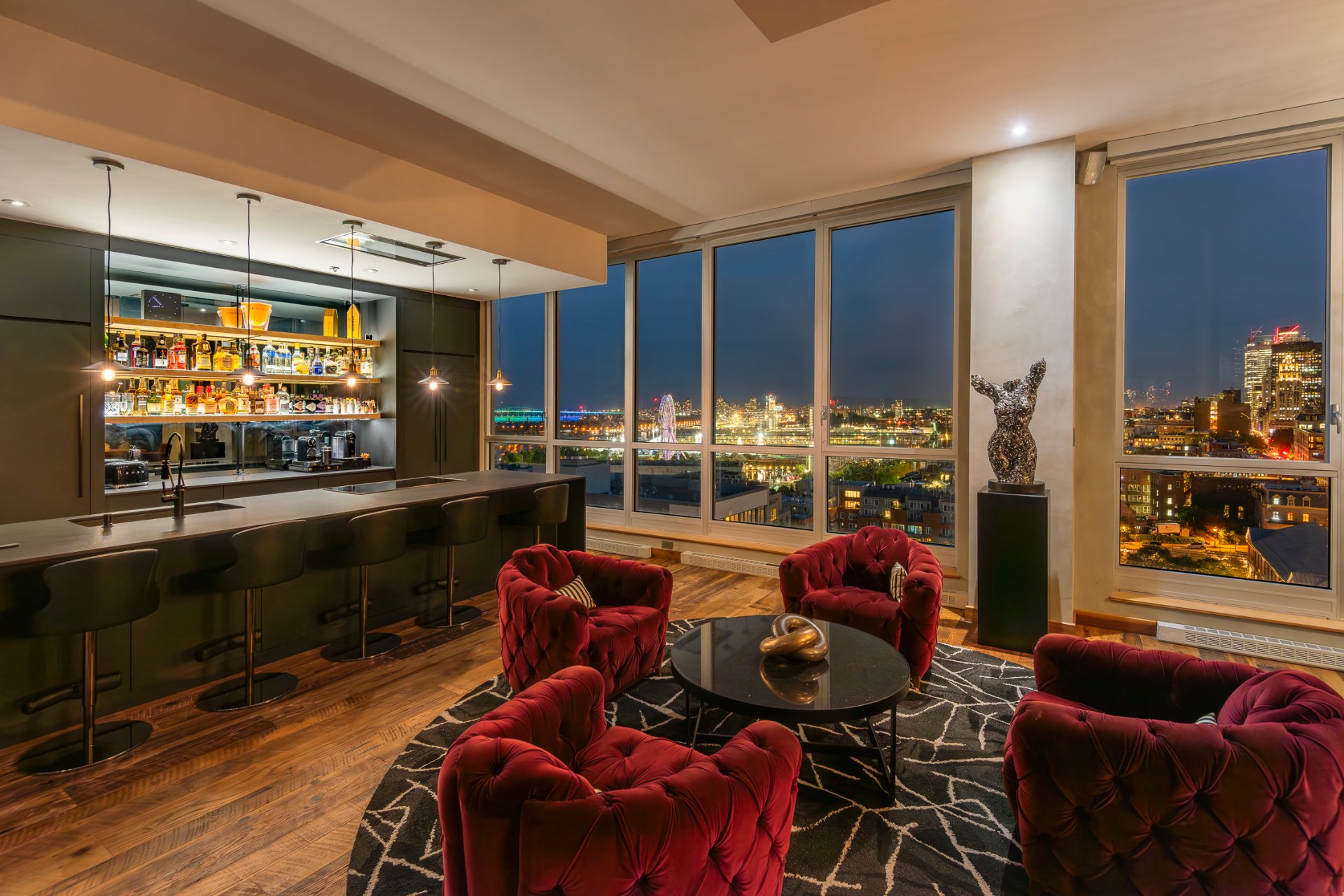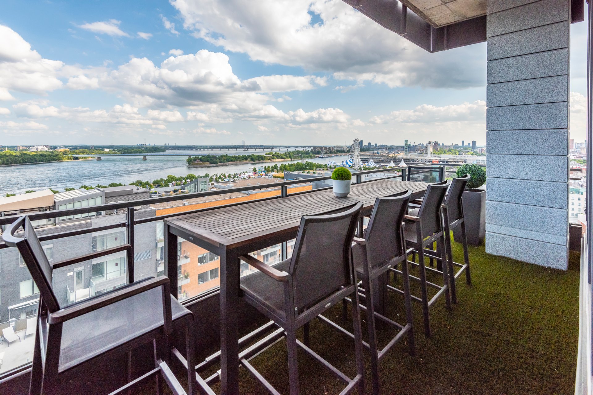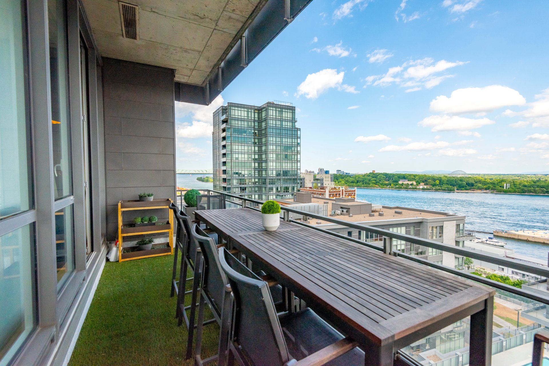 + High ceilings throughout with stunning views of the city skyline and St. Lawrence River