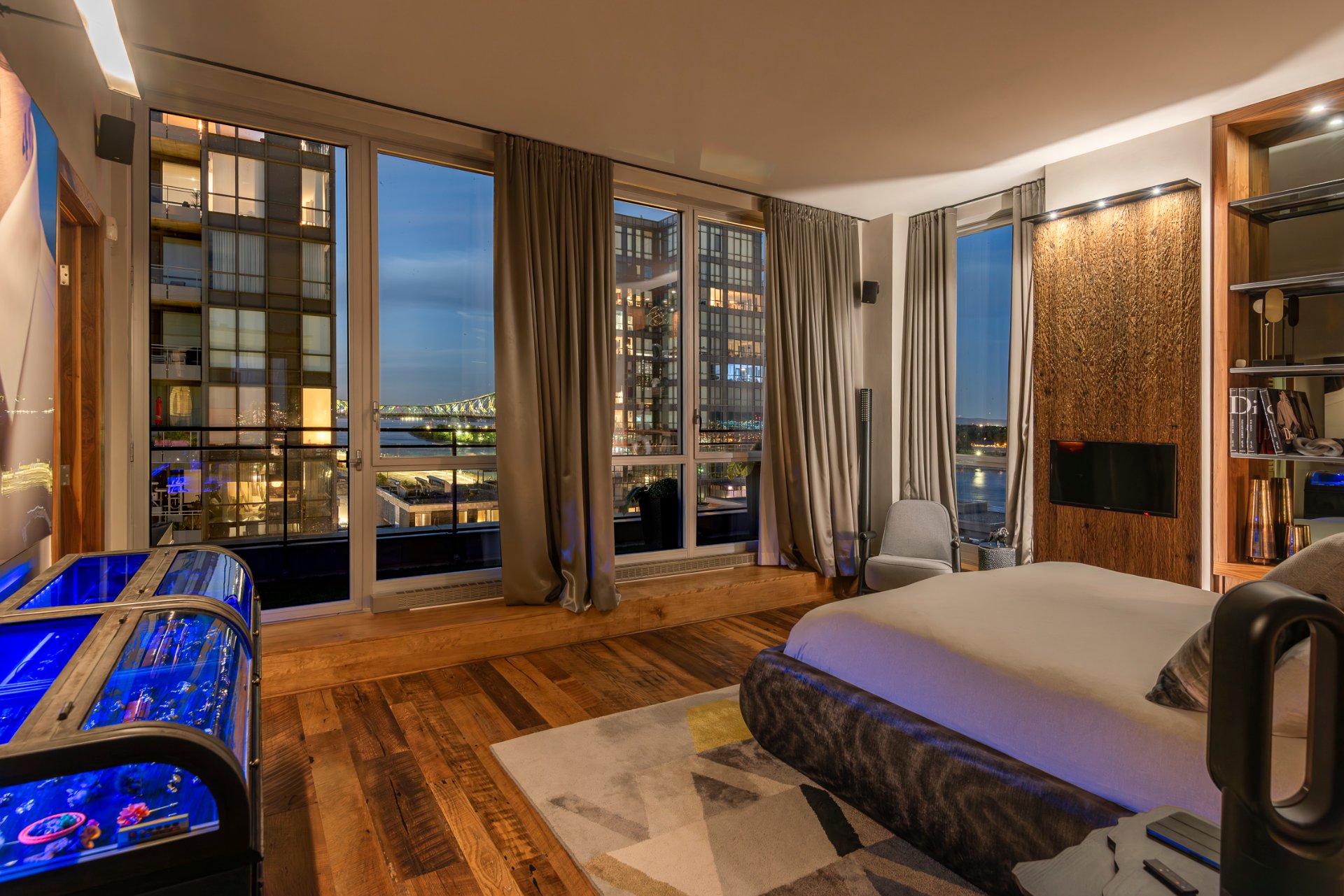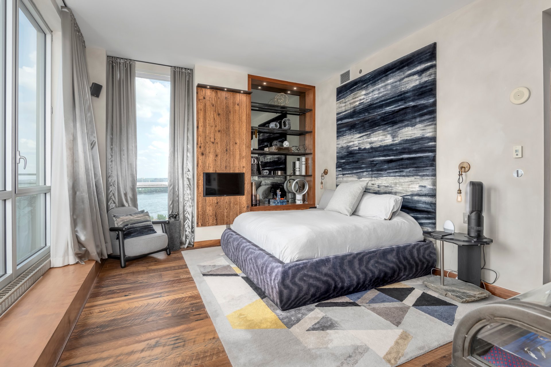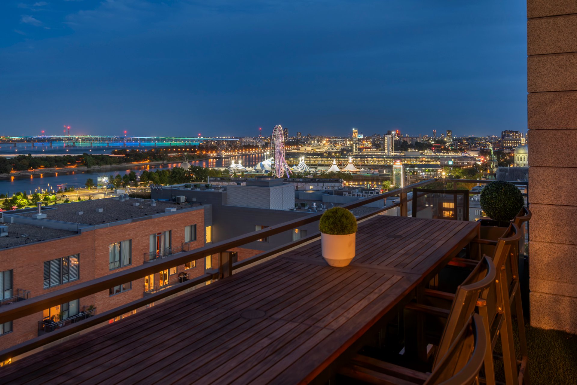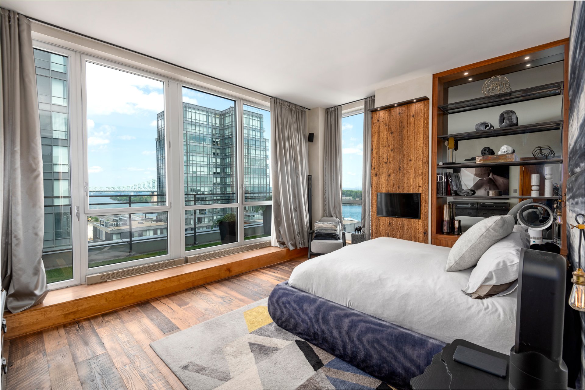 Upon entering, visitors will be dazzled by the breathtaking views of the Old Port and the river, as well as the spectacular living spaces. Remodeled and redesigned by a renowned interior designer, the space has been masterfully optimized for volume, natural light, views, modern comfort, and luxury. Two beautiful terraces overlook the river and the city. A true gem in the heart of Old Montreal, offering an uncompromising quality of life.