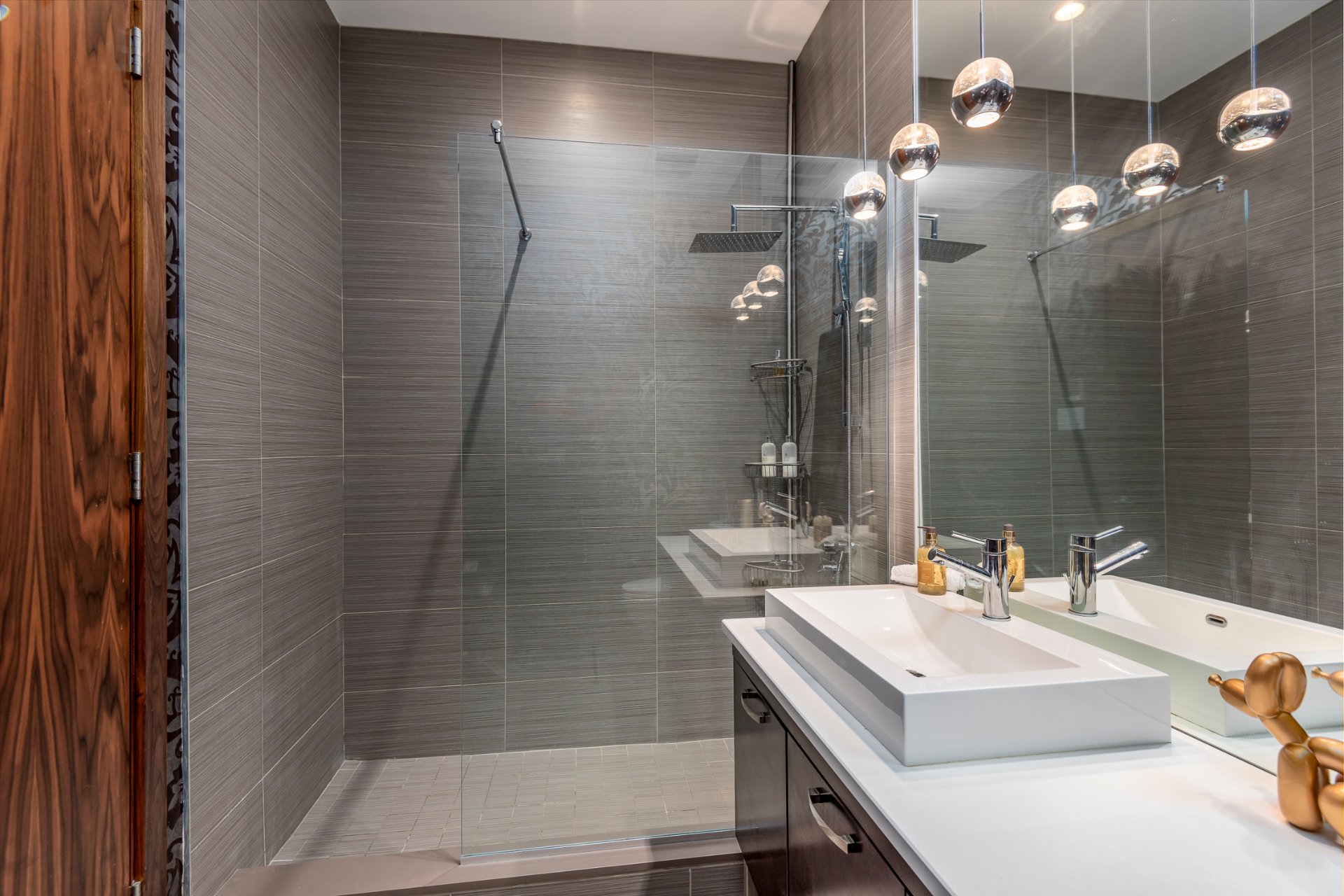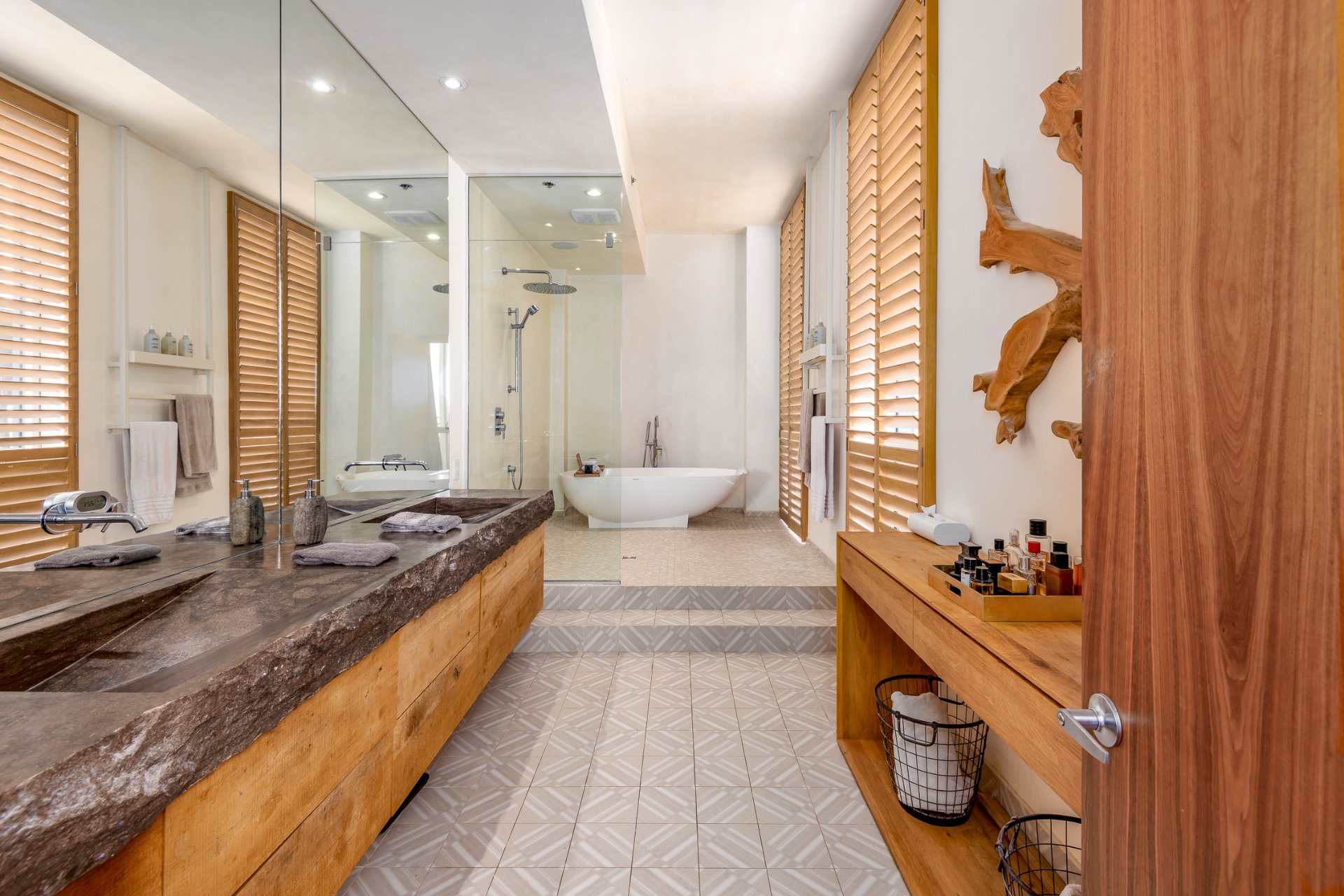 + Luxury finishes: Tadelakt shower walls in the master bath (Moroccan/Turkish spa technique) - Laser-cut Pierre St-Marc double sink in master - Indiana limestone sink in powder room - Authentic antique reclaimed oak flooring - Peinture à la chaux hand-finished walls