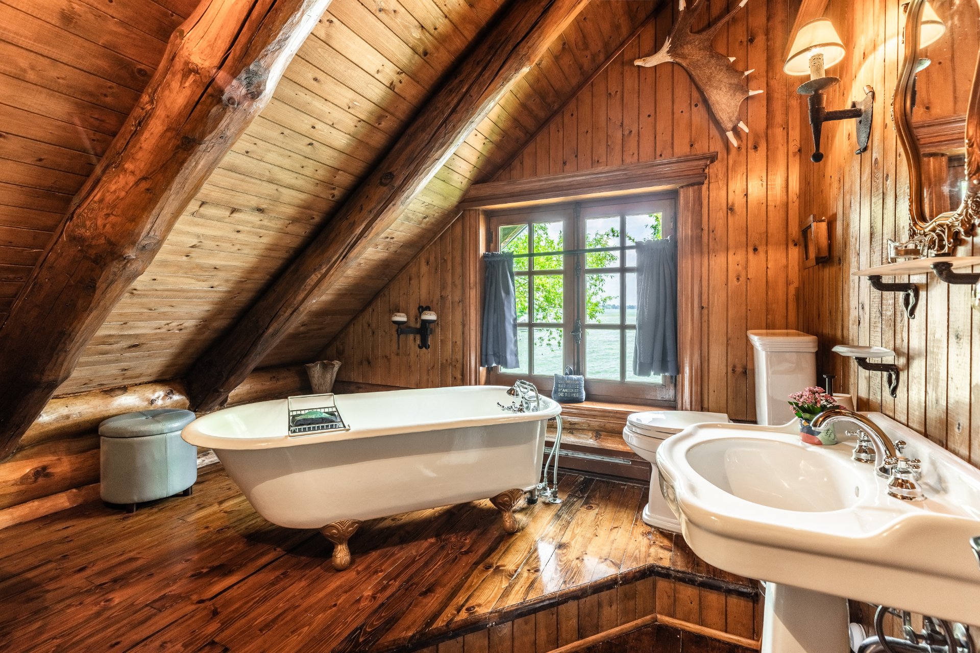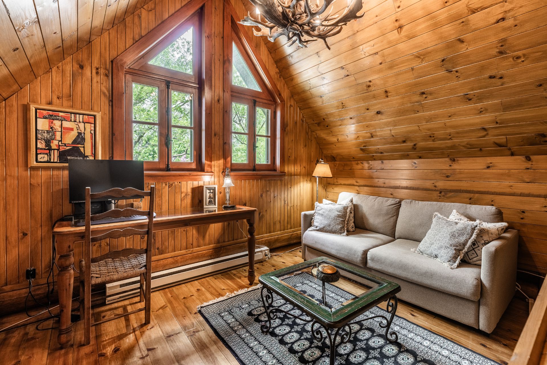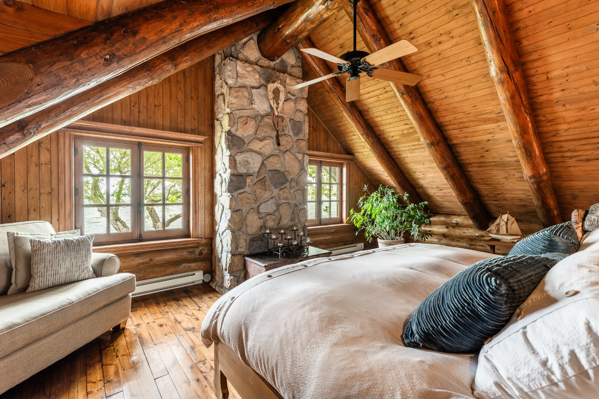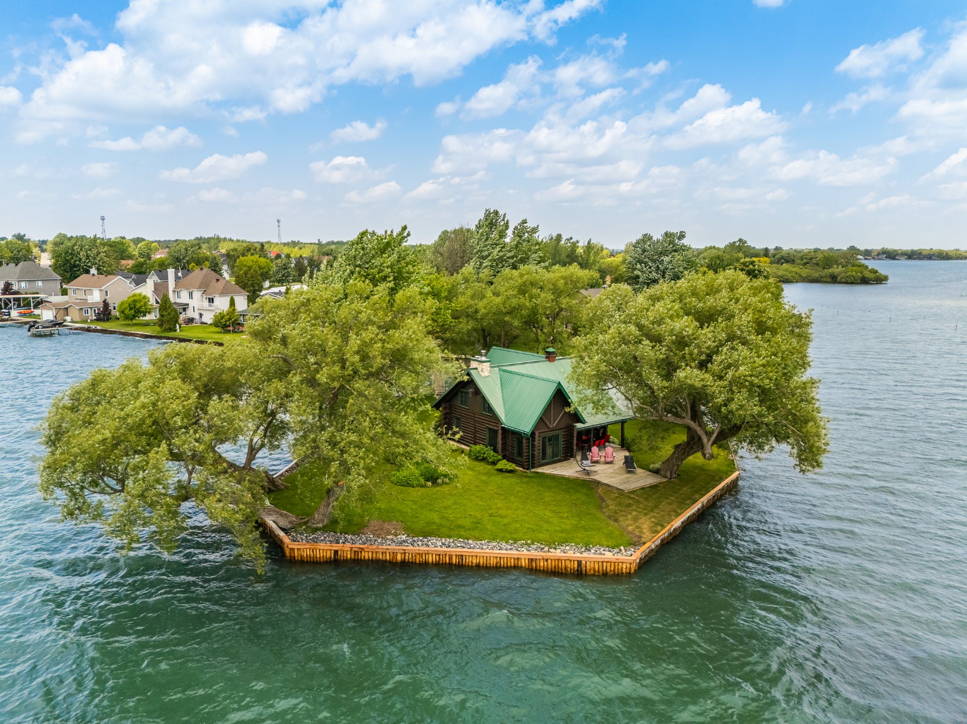 + Située sur une île privée avec un charme de chalet, accessible par un pont