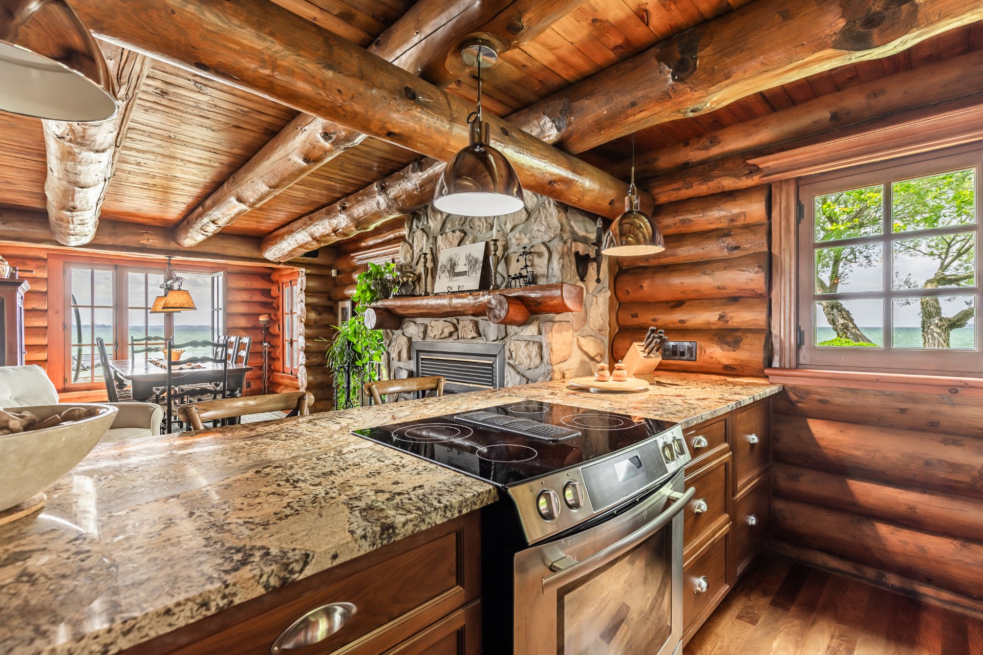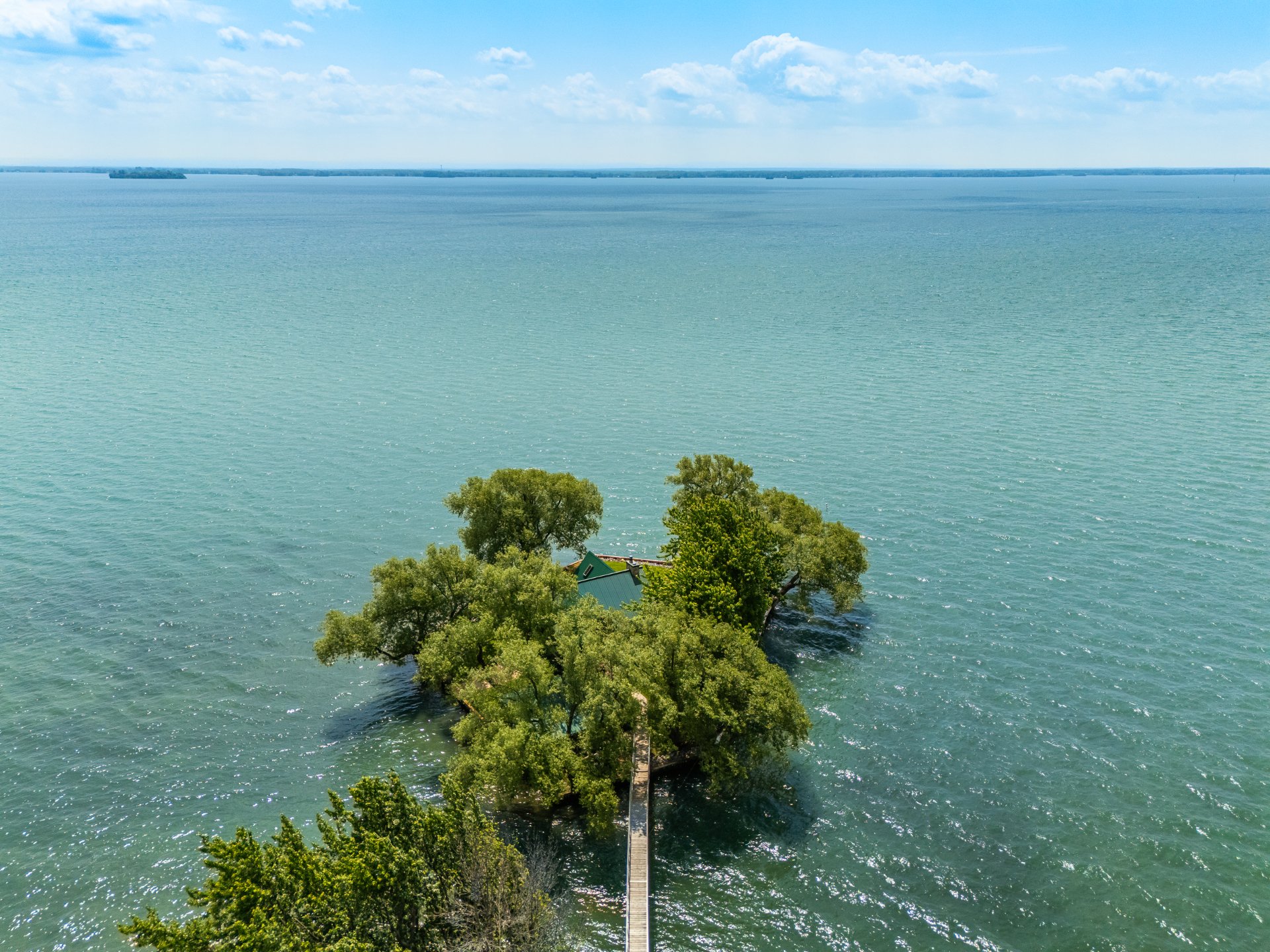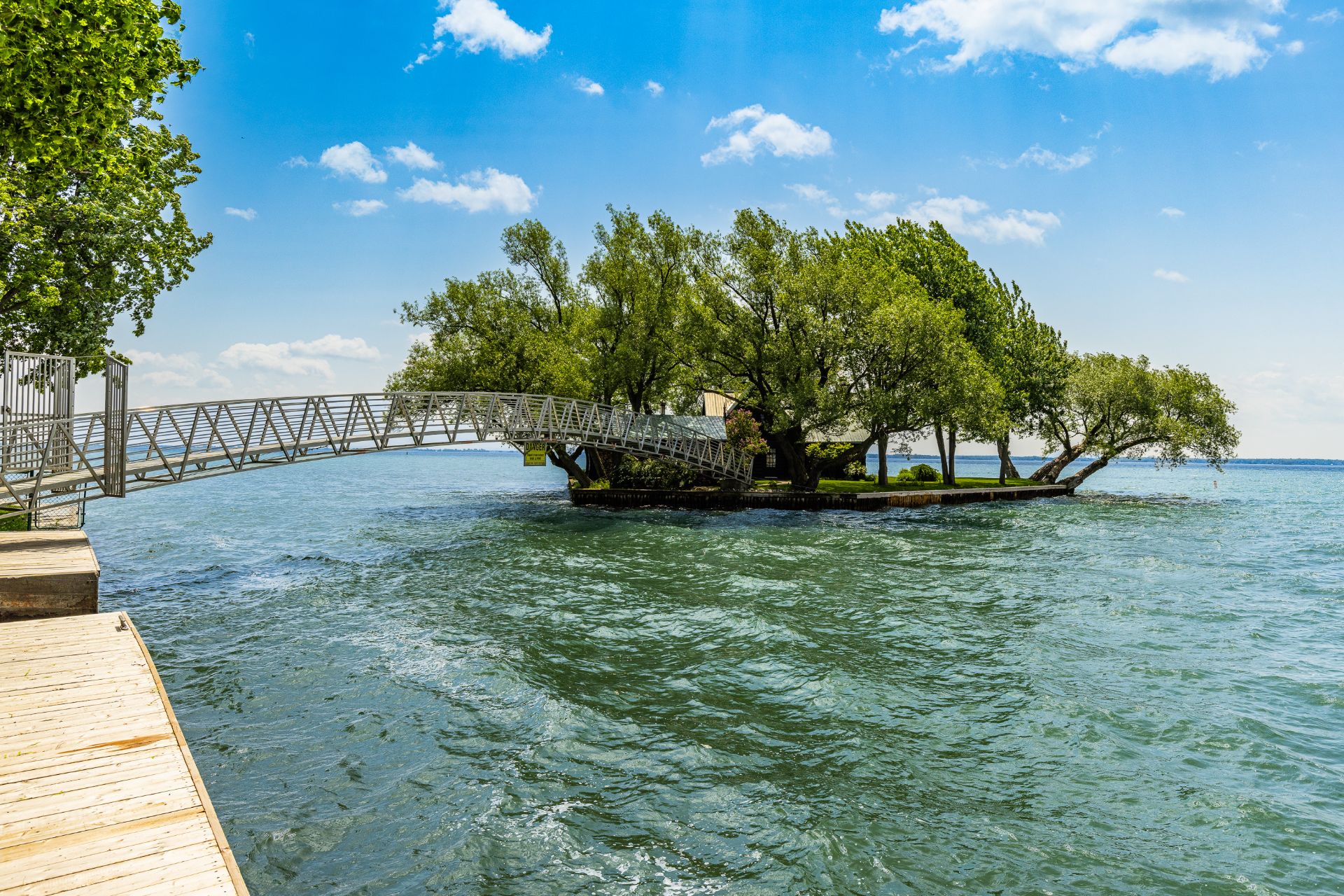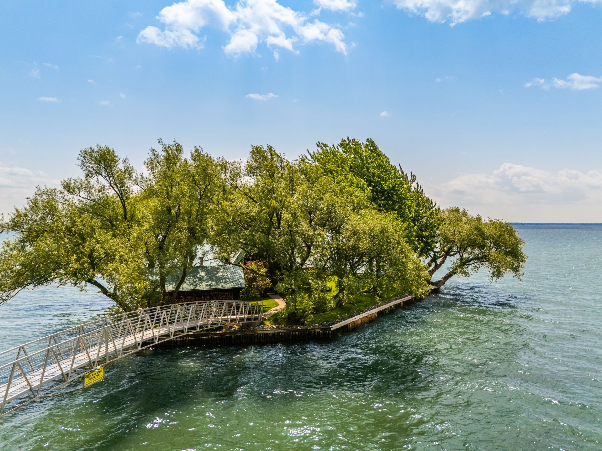 + Située sur une île privée avec un charme de chalet, accessible par un pont
