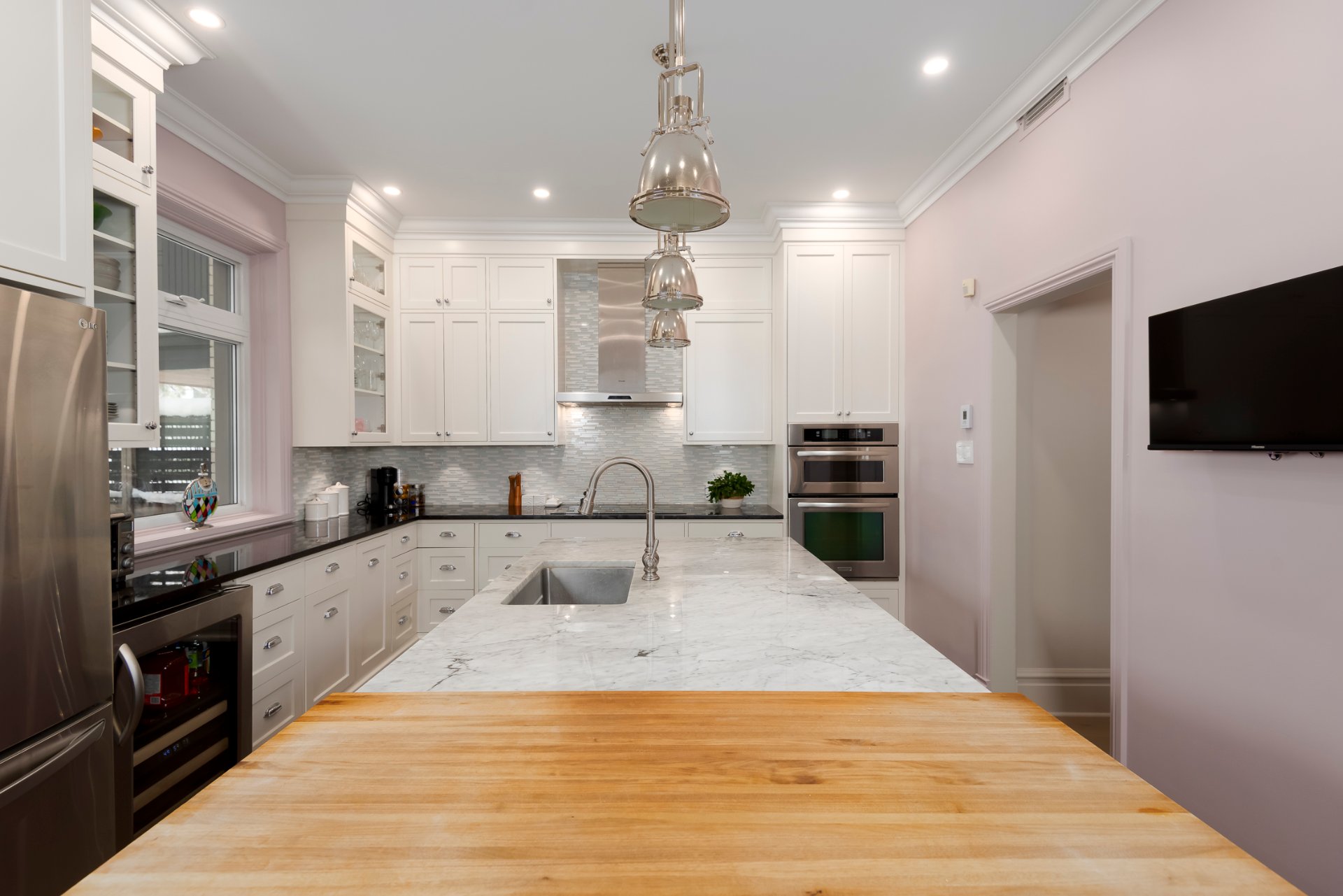 + Cuisine de chef avec sols en ardoise chauffants, grand îlot en marbre/granit et nombreux rangements sur mesure