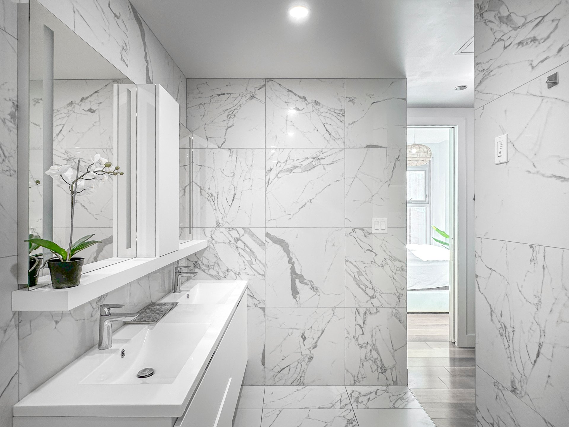 + Vaste suite principale incluant un dressing et une salle de bains attenante. Celle-ci inclut double vasque et d'une douche vitrée.