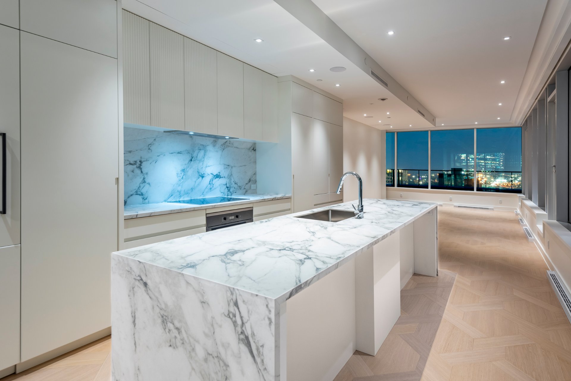 + Appartement conçu sur mesure avec parquets en chêne pâle importé et d'une cuisine dernier cri en marbre avec électroménagers haut de gamme et nombreux rangements