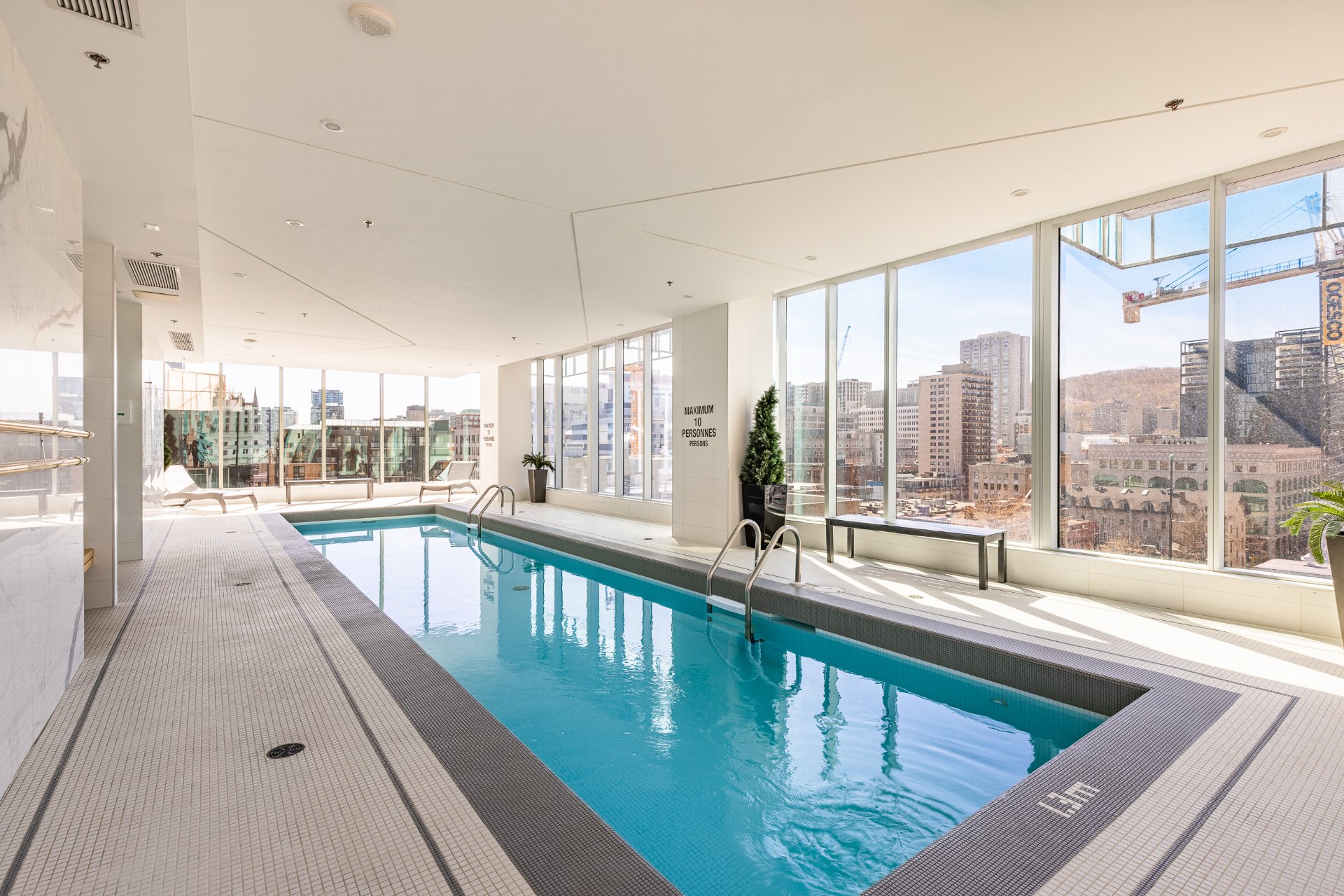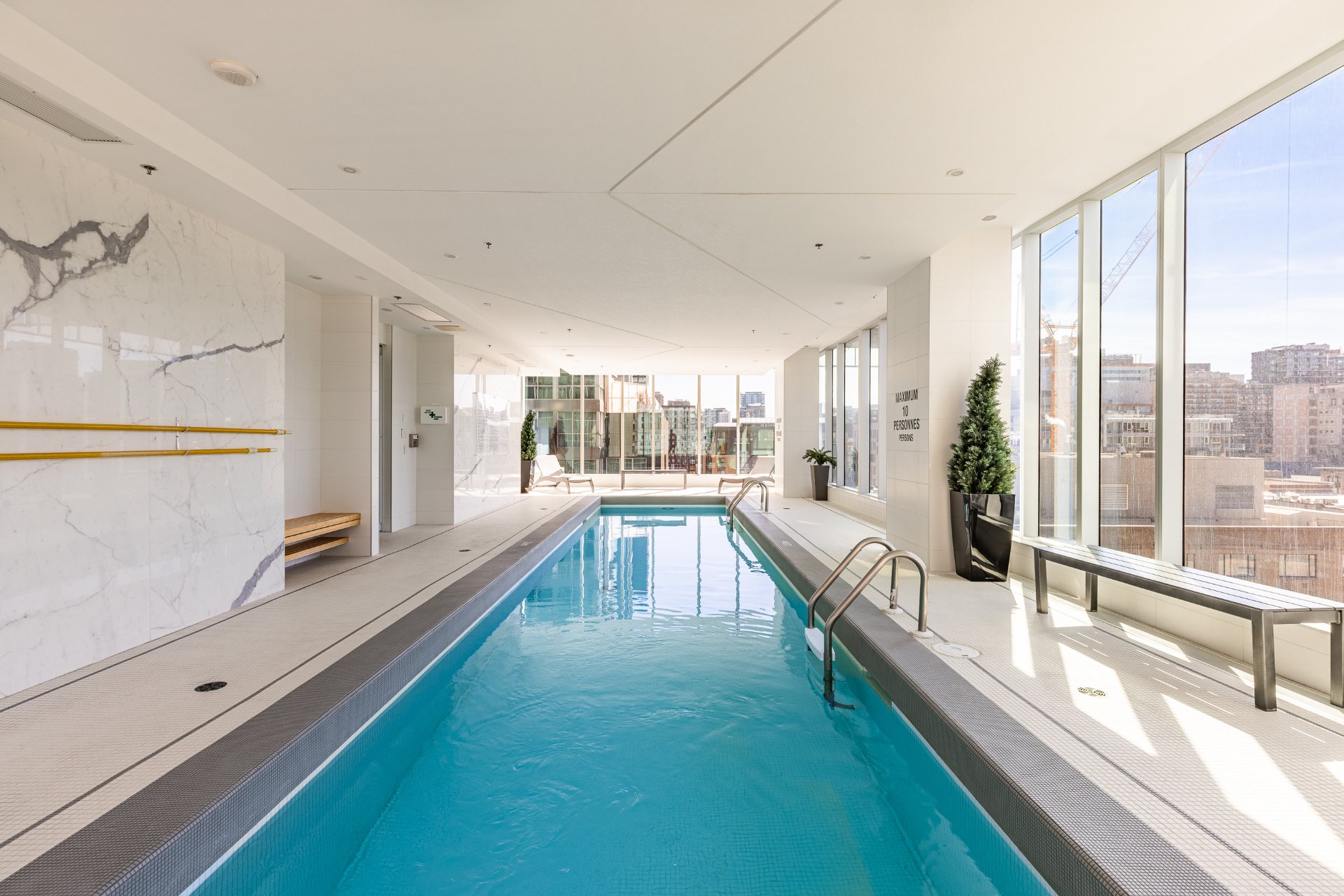 + Services au 8e étage: piscine intérieure à l'eau salée, gym entièrement équipée, une salle de repos/lounge, salle de conférence, salle de yoga, sauna sec, terrasse, bain à remous extérieur.